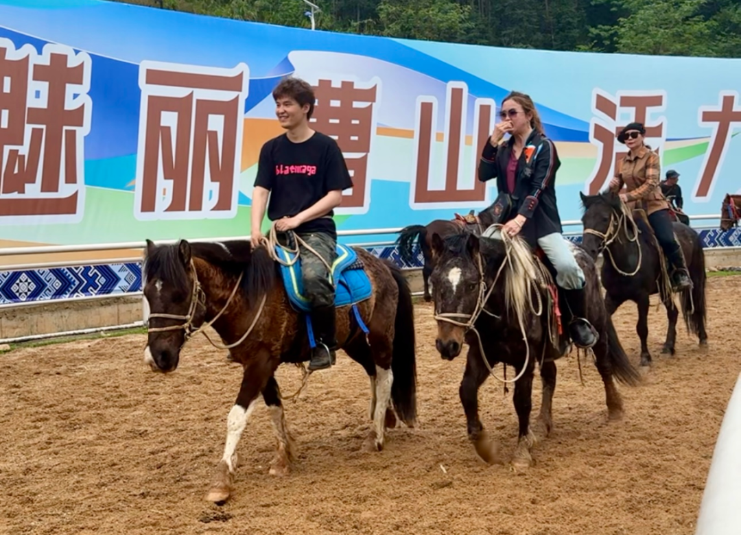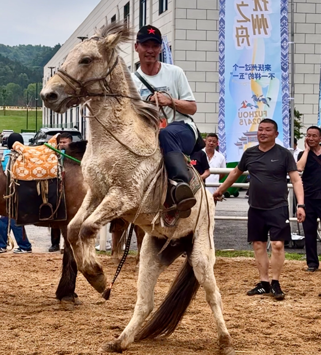 “哇!可以摸一下吗?”“想骑上去试试蒙古马有什么不一样”⋯⋯当驯马师将蒙古马牵至室外马场时,不少闻讯赶来的市民游客纷纷凑上前驻足观看。现场市民们的热情也感染了草原的驯马师们,他们主动邀请市民游客们骑上马背,感受来自草原的热情。