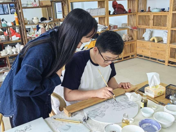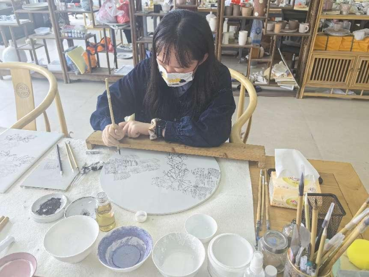 在景德镇陶瓷技师学院的美丽校园,记者见到了陶瓷艺术工程系一年级学生李星媛。清清秀秀的她,是一名来自山东济南的女孩,从小热爱绘画,原本就读于北京大学文物鉴定专业,毕业后做过一段时间的文物修复师,并在中央美院进修,出于对陶瓷技艺的热爱和对未来职业发展的考虑,她放弃留在京城发展的机会,毅然决然地选择到景德镇陶瓷技师学院学习,提升自己的陶瓷绘画理论和实践水平。