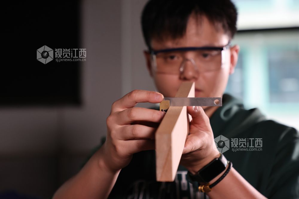 本报全媒体记者 吴文兵 吴福清 摄影报道 刨花与木屑飞舞,锤子与凿刀起落。4月25日,位于江西环境工程职业学院的世界技能大赛家具制作项目中国集训基地,世界技能大赛特别赛家具制作项目冠军、全国五一劳动奖章获得者李德鑫穿梭其间,时而监督指导,时而上手示范。 李德鑫2000年出生于有着“木匠之乡”“中国实木家具之都”等美誉的赣州市南康区,受成长环境的影响,他选择进入江西环境工程职业学院,学习家具艺术设计专业。在学校,通过系统化学习人体工程学、设计美学、材料科学、家具发展史等知识,李德鑫对家具之美有了更深了解;通过动手实践,李德鑫陆续“解锁”了锯、凿、斧、刨等一项项专业技能,也读懂了“攻木之工”的匠心传承。因为过硬的本领和对木工的热爱,李德鑫毕业后留校任教,成为江西环境工程职业学院家具学院产品设计教研室的一名教师。 2022年,李德鑫在瑞士参加世界技能大赛特别赛,获得家具制作项目金牌,这是我国自参加该赛以来在家具制作项目上夺得的首金。“是母校帮助我走上了世界赛场,我也要带着我的徒弟们征战世界赛场。”在世界技能大赛家具制作项目中国集训基地,李德鑫将自己的经验毫无保留地分享给了集训队员,“家具制作需要保持手感,形成肌肉记忆,一天不练就会感到生疏,勤学勤练,唯手熟尔” 。 除了给普通高职学生上课,李德鑫还为南康当地的家具企业提供技能培训。在他看来,家具产业要有更好的发展,必须迈向规范化、高端化、国际化,而这离不开人才的支撑。“我的使命就是传承工匠精神,培养更多高水平、高技能的人才,为家具产业高质量发展贡献自己的力量。”