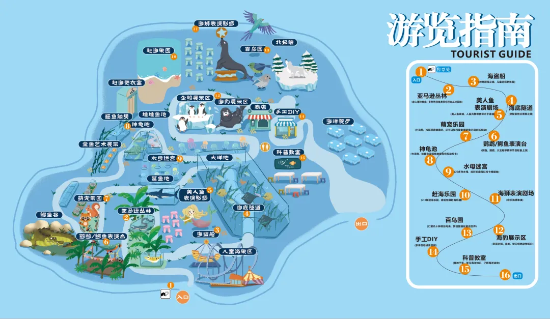 由企鹅馆、海豹观展池、海狮剧场组成。在这里,不仅可以看到精彩的海狮表演,还能近距离观看可爱的极地动物。