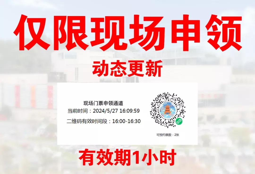 现场预约流程如下:现场未预约游客请前往该馆游客中心,通过现场扫码“门票申领通道”,实时查看并预约可用门票。