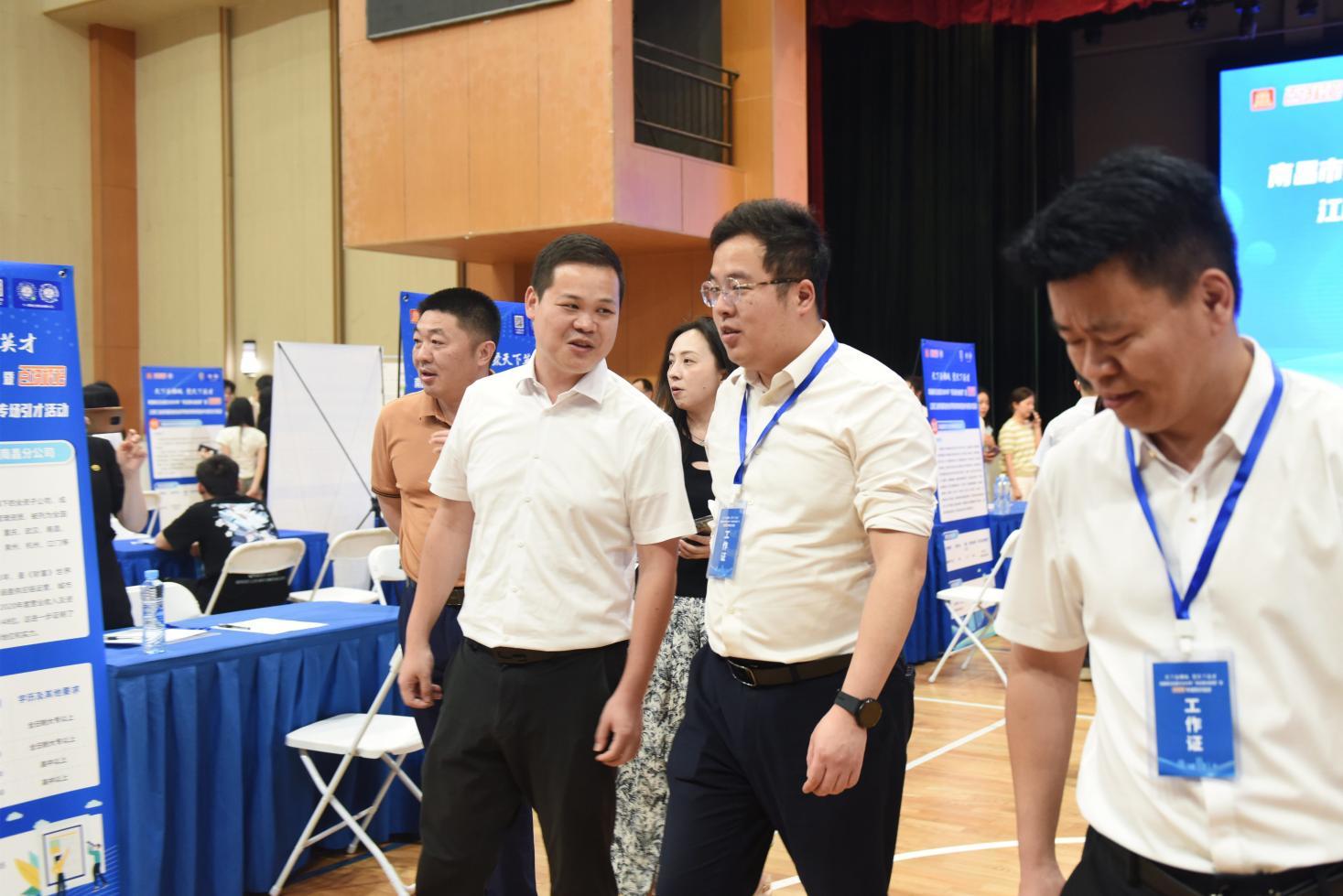 江西工贸职院党委书记、院长万晓波,党委委员、副院长胡晖,党委委员、副院长曾聪,党委委员、院长助理艾苏龙,红谷滩区委组织部副部长赵宇红、红谷滩区人社局就创中心主任唐清源到招聘会现场指导工作,并与参会企业、毕业生交谈,关心企业招聘情况和毕业生求职状况。