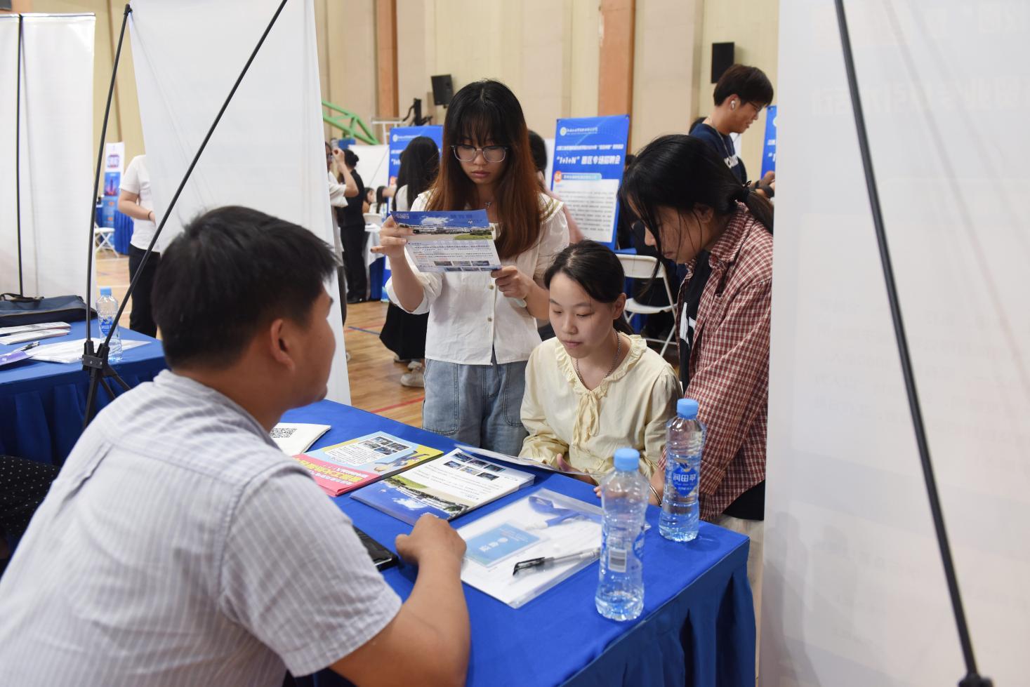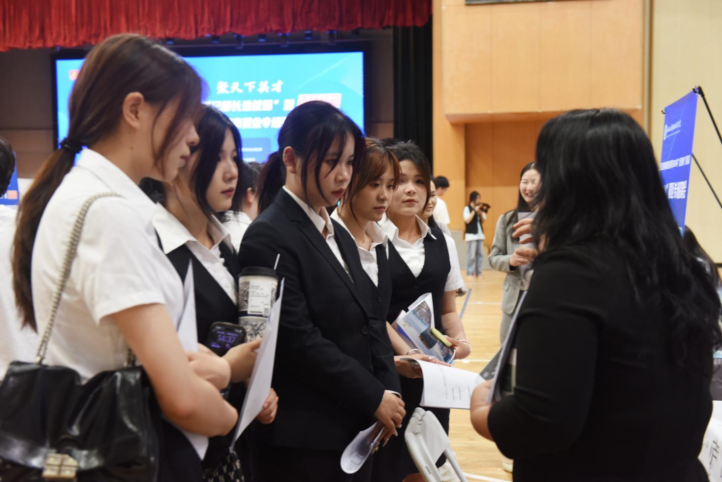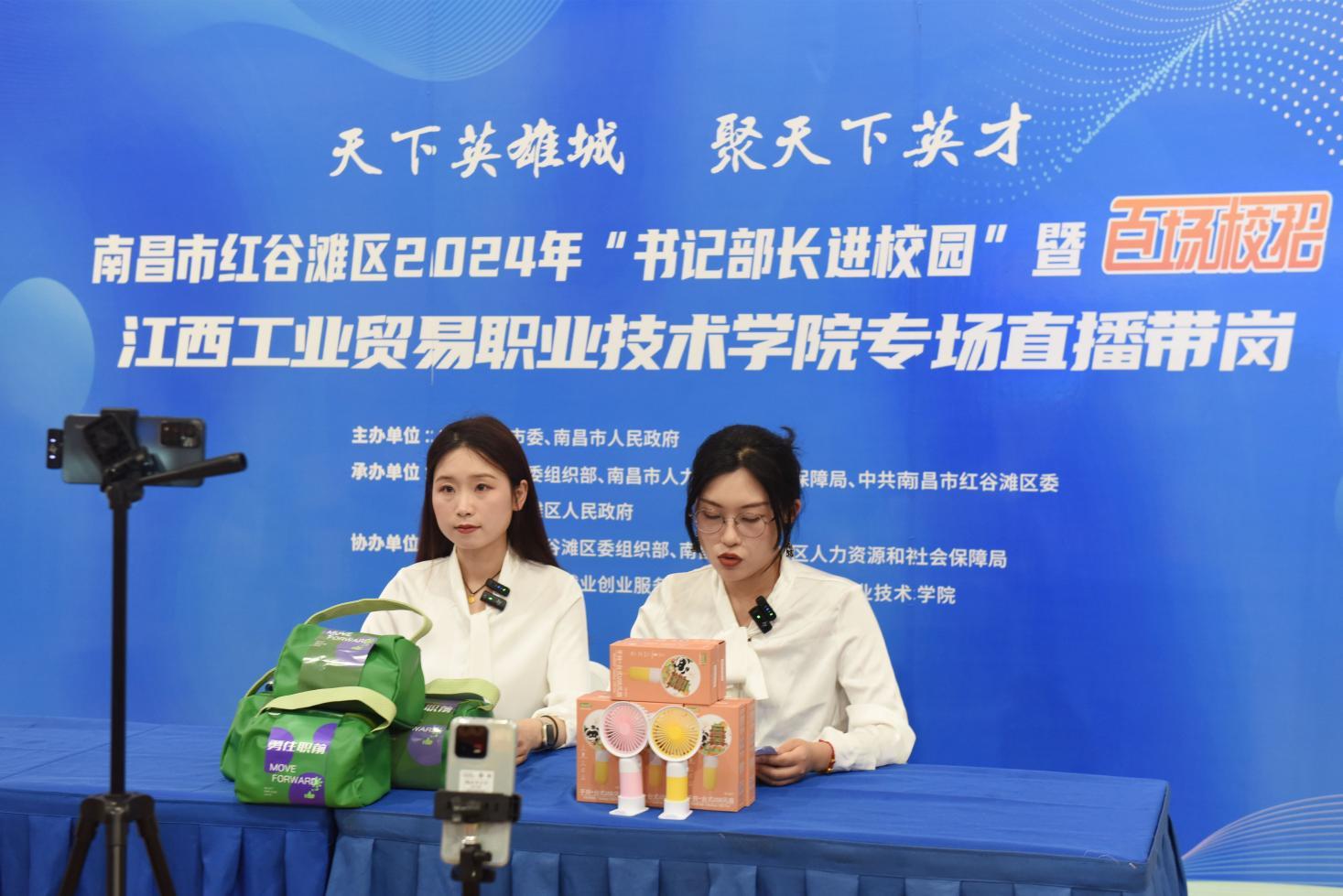 为做好学院2024届毕业生就业工作,为毕业生提供“不断线”岗位支持,江西工贸职院主动联合红谷滩区人社局,于6月3日在学院体育馆举办南昌市红谷滩区2024年“书记部长进校园”暨“百场校招”商务商贸业专场引才活动。招聘会企业包含旅游商务、文化传媒、电子信息、现代金融等多个行业,提供就业岗位1000余个,活动吸引800余名大学生来到现场,共计发放政策宣传折页600余份。
