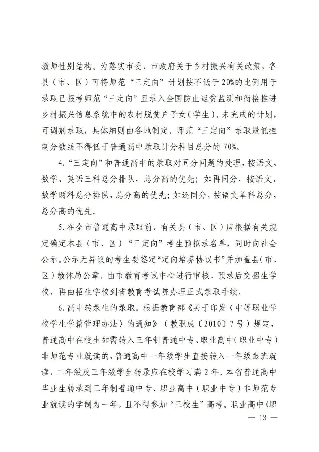 6.未被录取的师范定向类考生,可按其兼报志愿,参加普通高中或其他高、中职类院校的录取。
