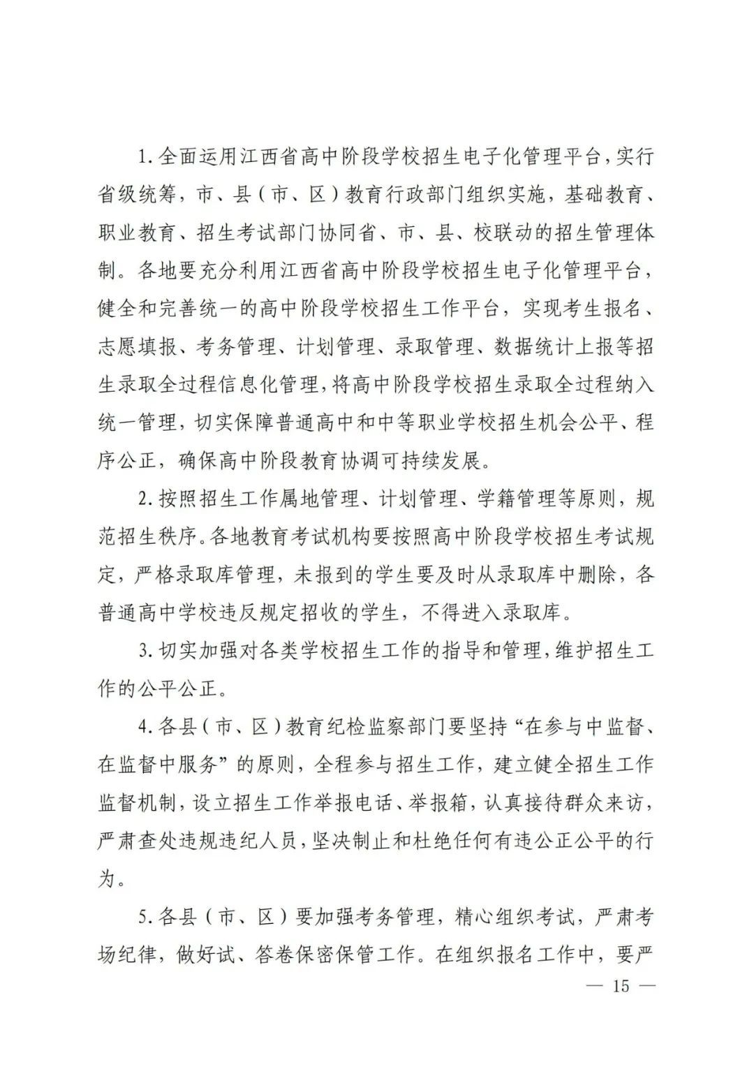 为切实做好我市2024年高中阶段学校考试招生工作,根据省教育厅、省中招委《江西省2024年高中阶段学校考试招生工作规定》(赣教考字〔2024〕10号)及相关文件精神,结合我市实际,制定本规定。