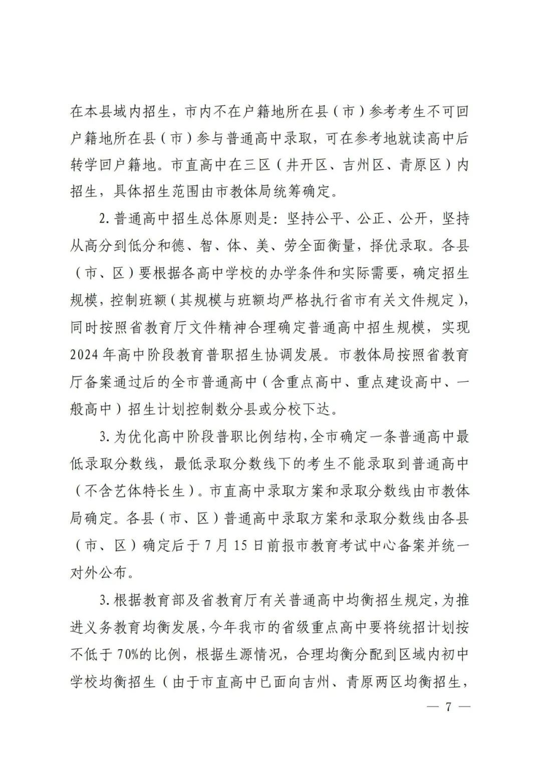 2.各县(区)普通高中学校招生计划由市教育体育局根据普职融通协调发展有关要求拟定,报省教育厅审核批准后另行下达。