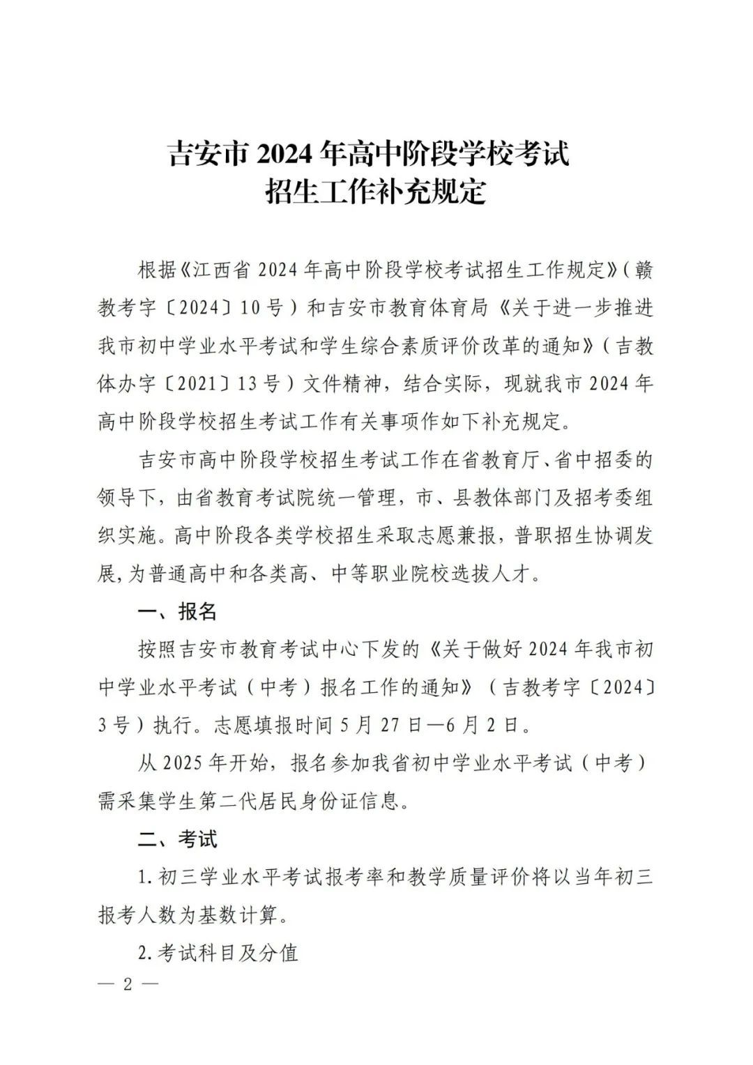 按照《关于做好江西省2024年初中学业水平考试(中考)报名工作的通知》(赣考院中〔2024〕2号)和我市报名工作文件执行。