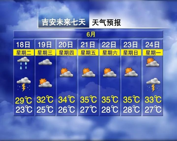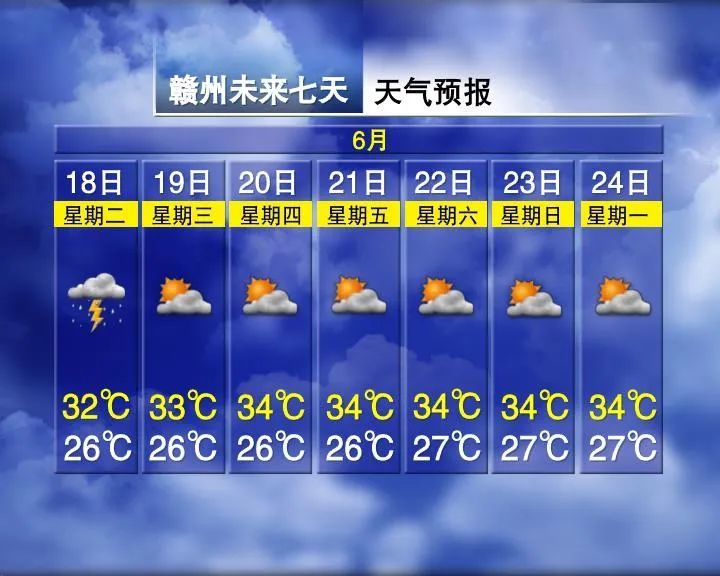 赣北阴天多云有阵雨或雷阵雨,部分地区有中雨,局部地区有大到暴雨或短时强降水;赣中和赣南多云间晴,部分地区午后到夜间有阵雨或雷阵雨。