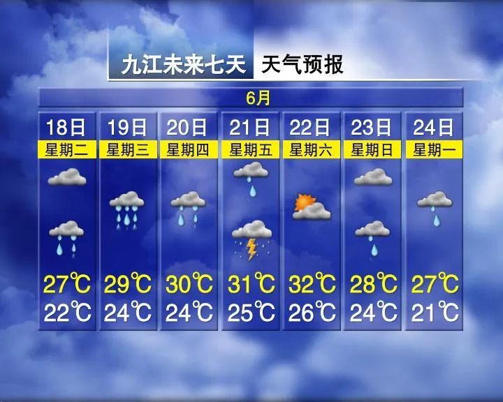 赣北阴天多云有阵雨或雷阵雨