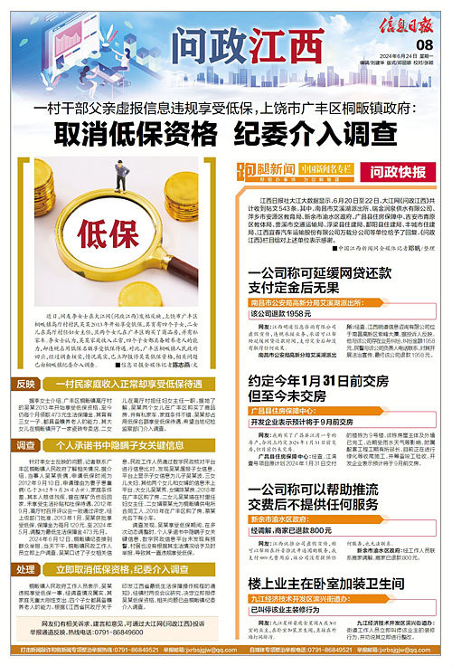 江西日报社大江大数据显示,6月20日至22日,大江网《问政江西》共计收到帖文543条,其中,南昌市艾溪湖派出所、瑞金润泉供水有限公司、萍乡市安源区教育局、新余市渝水区政府、广昌县住房保障中、吉安市青原区教体局、贵溪市交通运输局、浮梁县住建局、鄱阳县住建局、丰城市住建局、江西宜春汽车运输股份有限公司万载分公司等单位给予了回复,《问政江西》栏目组对上述单位表示感谢。