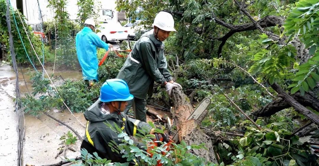 濂溪区:暴雨致树倒压杆,供电部门紧急抢修