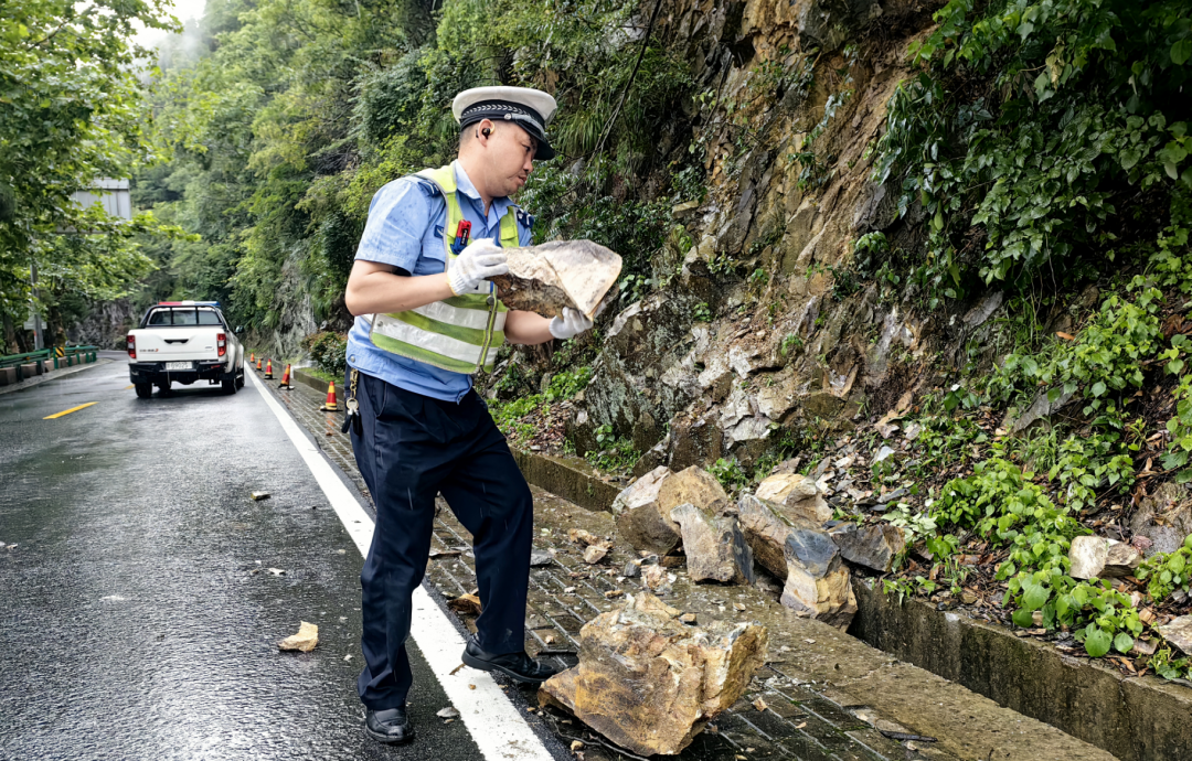 ▲庐山公安局交管大队加强南北山公路巡查,积极排查化解山体塌方、倒塌树木占道等带来的交通安全隐患,确保景区道路安全畅通。