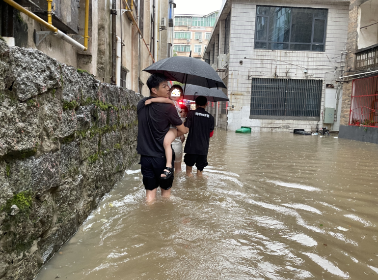 6月24日上午11时许,高安市西湖路国税局小区一楼的一名群众报警,称因持续大雨涨水,家中两个小孩被困,请求帮助。高安市公安局特巡警文化馆警务站民辅警迅速到达现场,及时将受困群众转移至安全区域。
