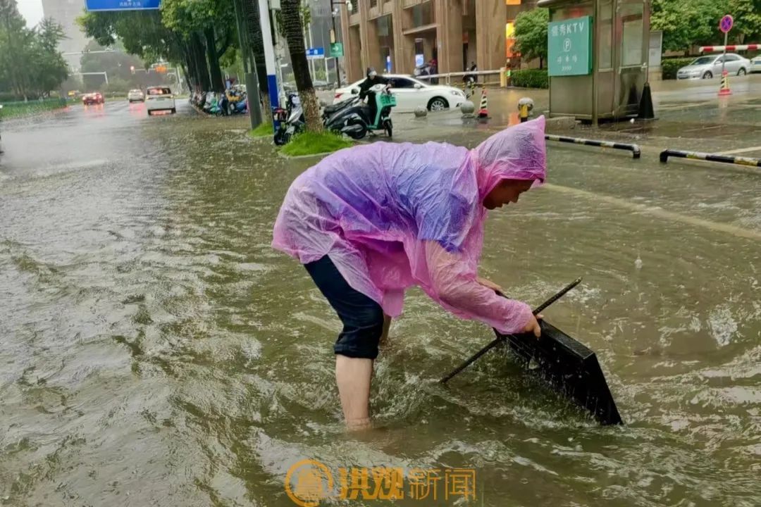 6月22日开始,九江市普降大雨,6月23日上午开始,经开区九瑞大道水果批发市场至经开区管委会路段自东向西出现了积水,导致市民出行不便。