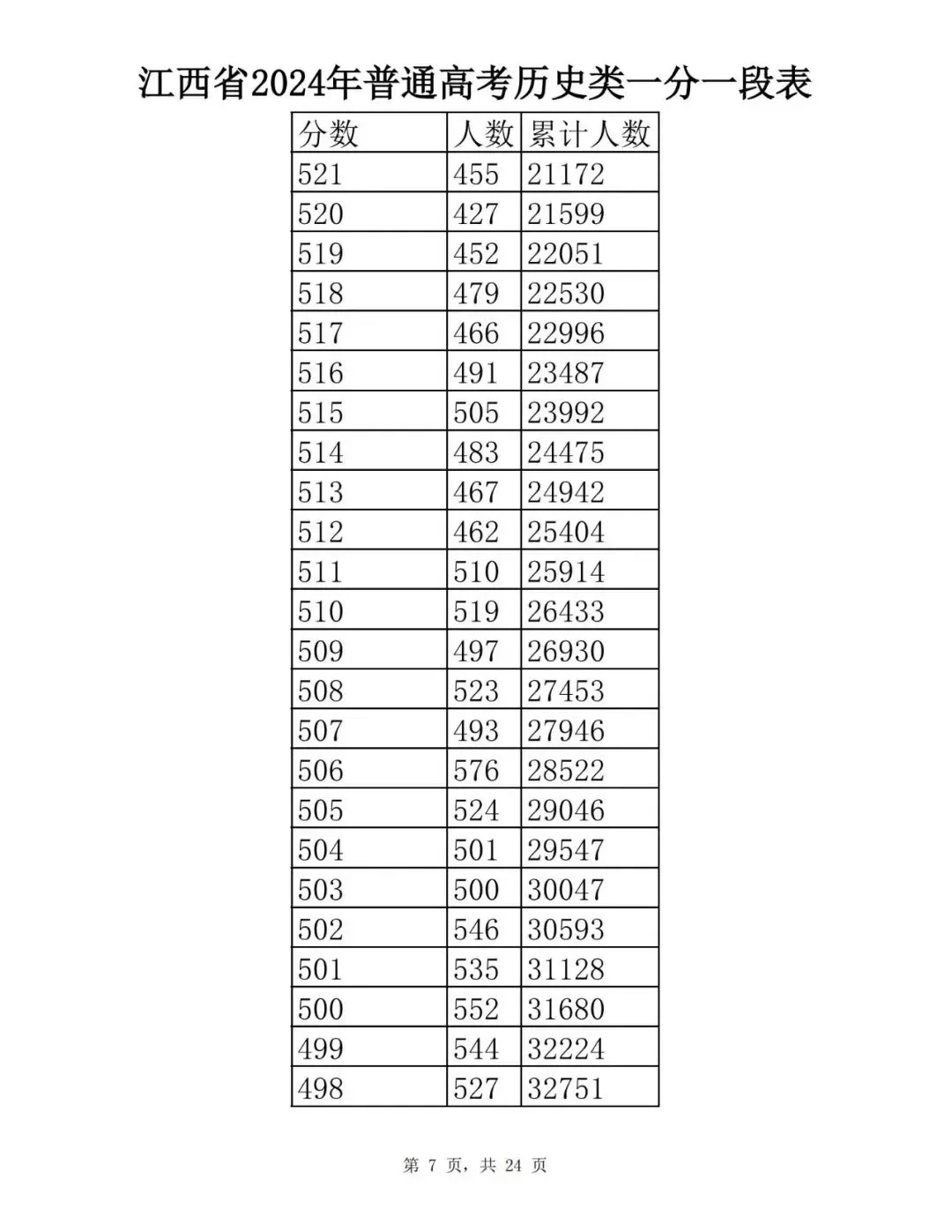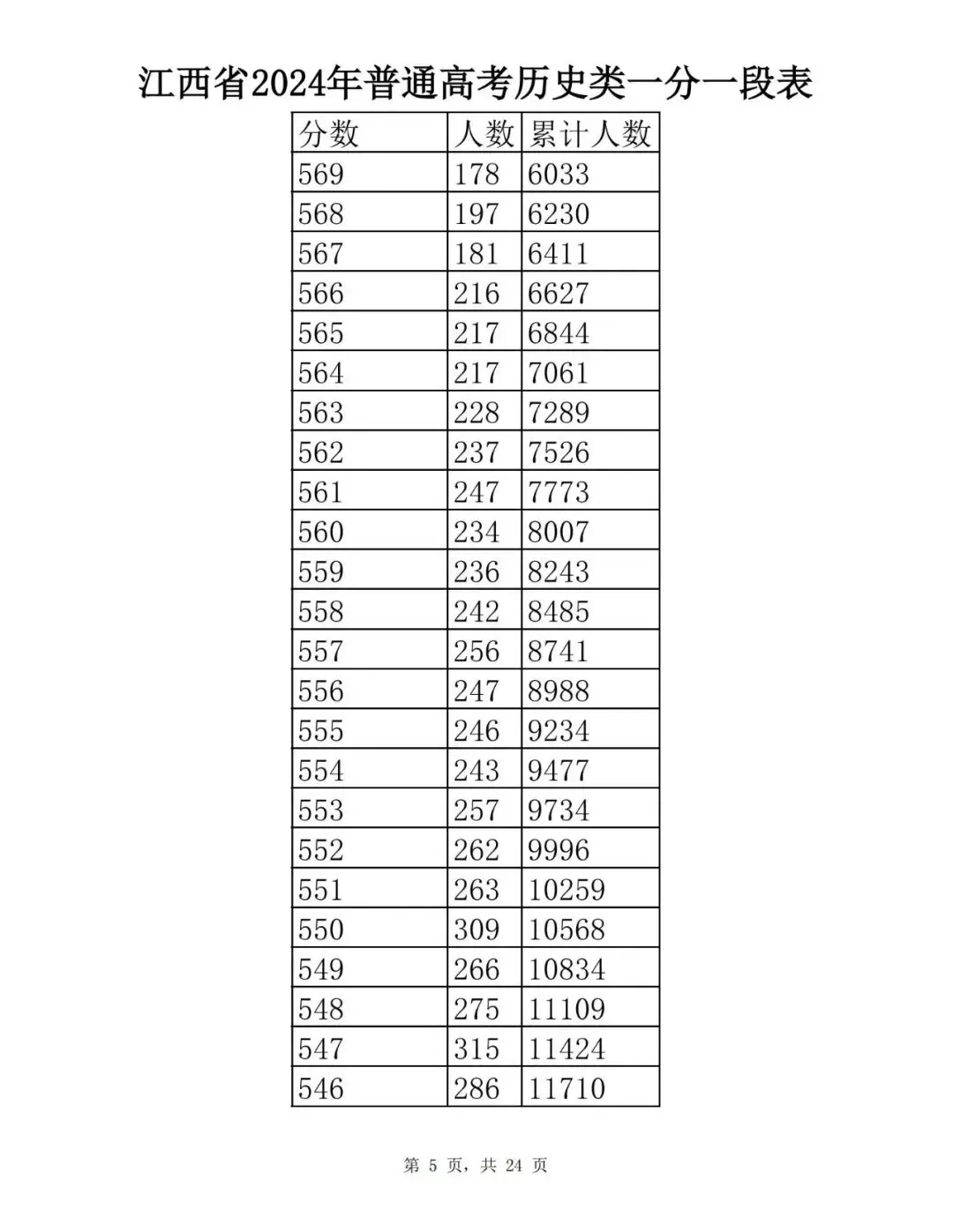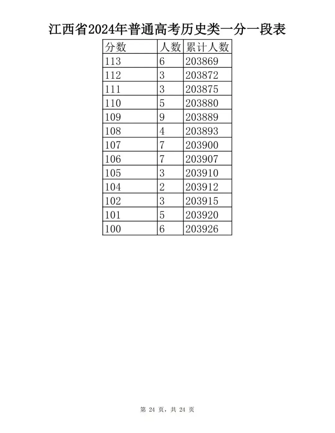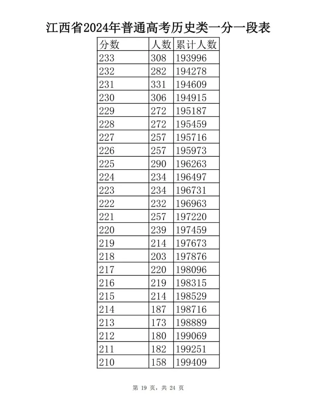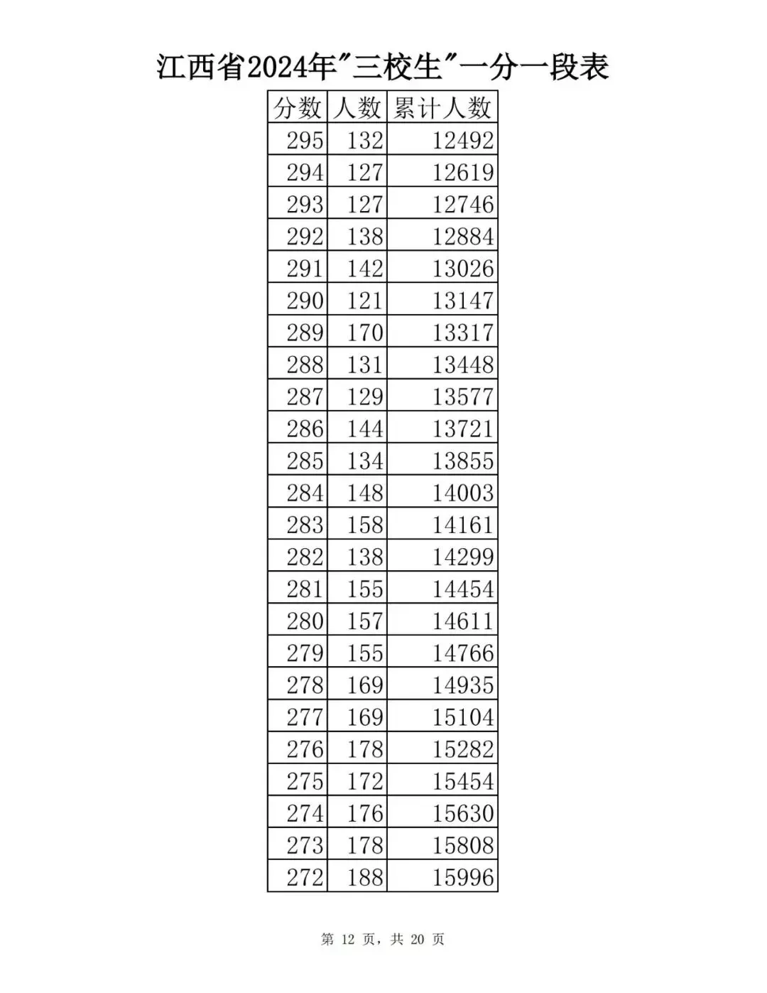 江西省2024普通高考一分一段表公布