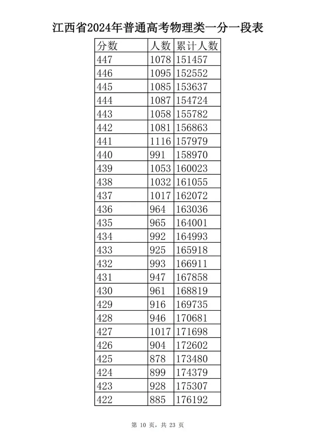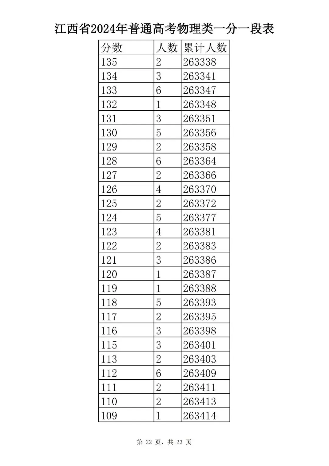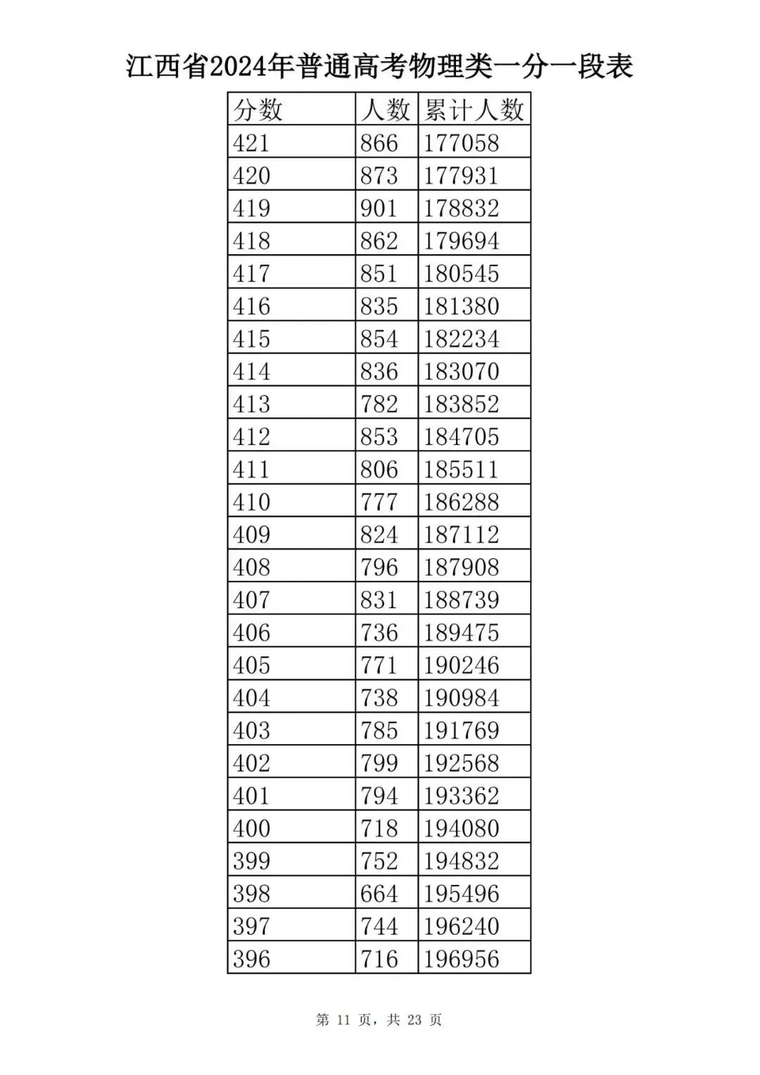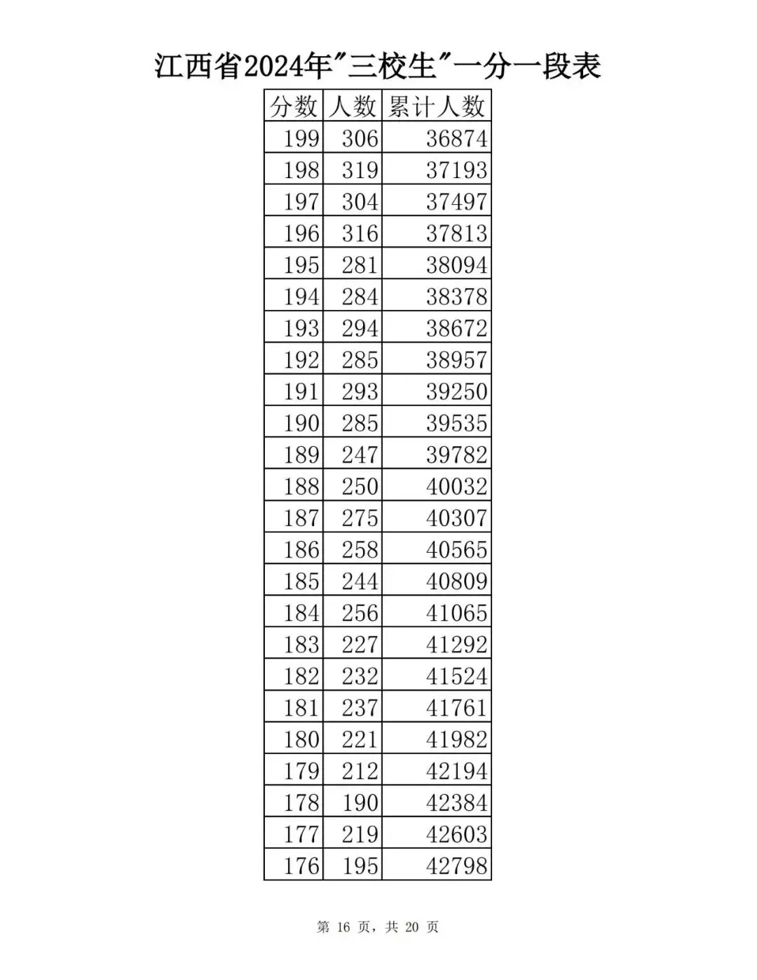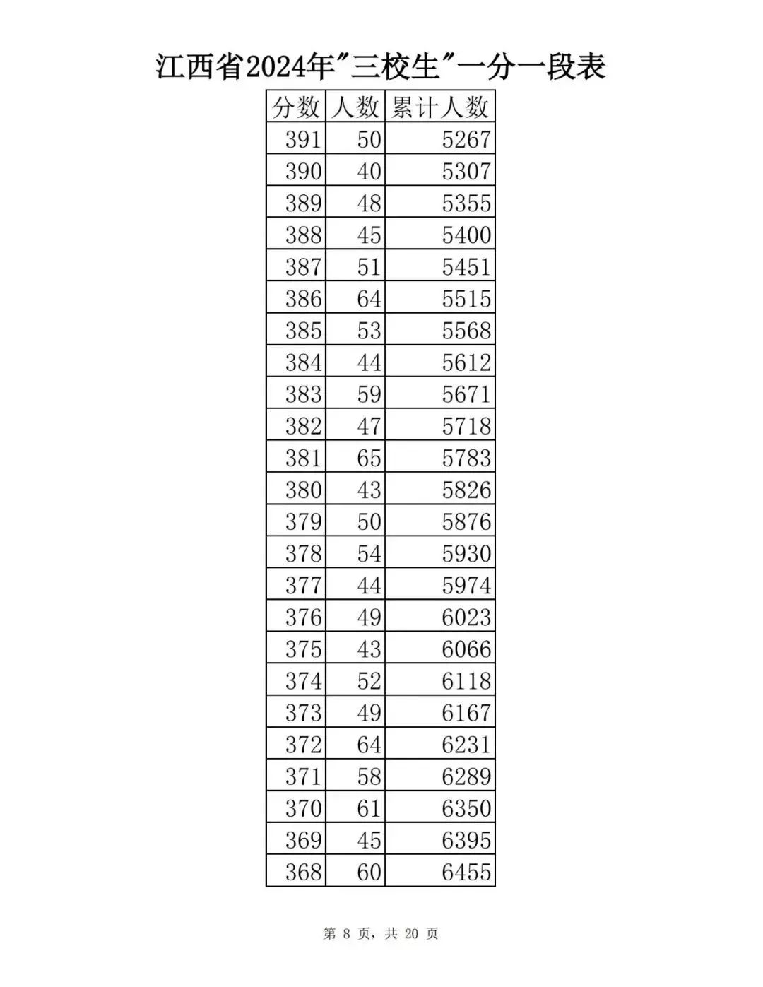 江西省2024普通高考一分一段表公布
