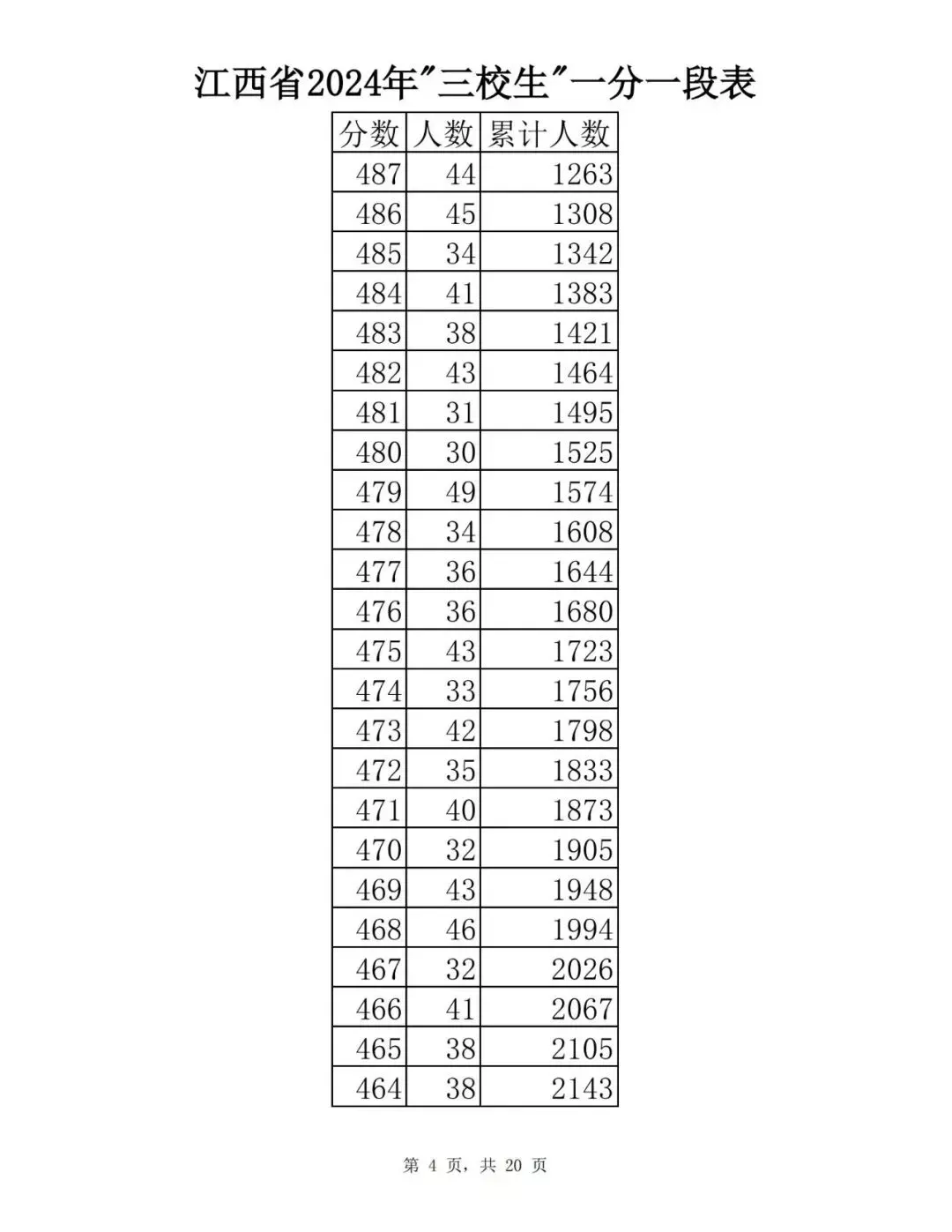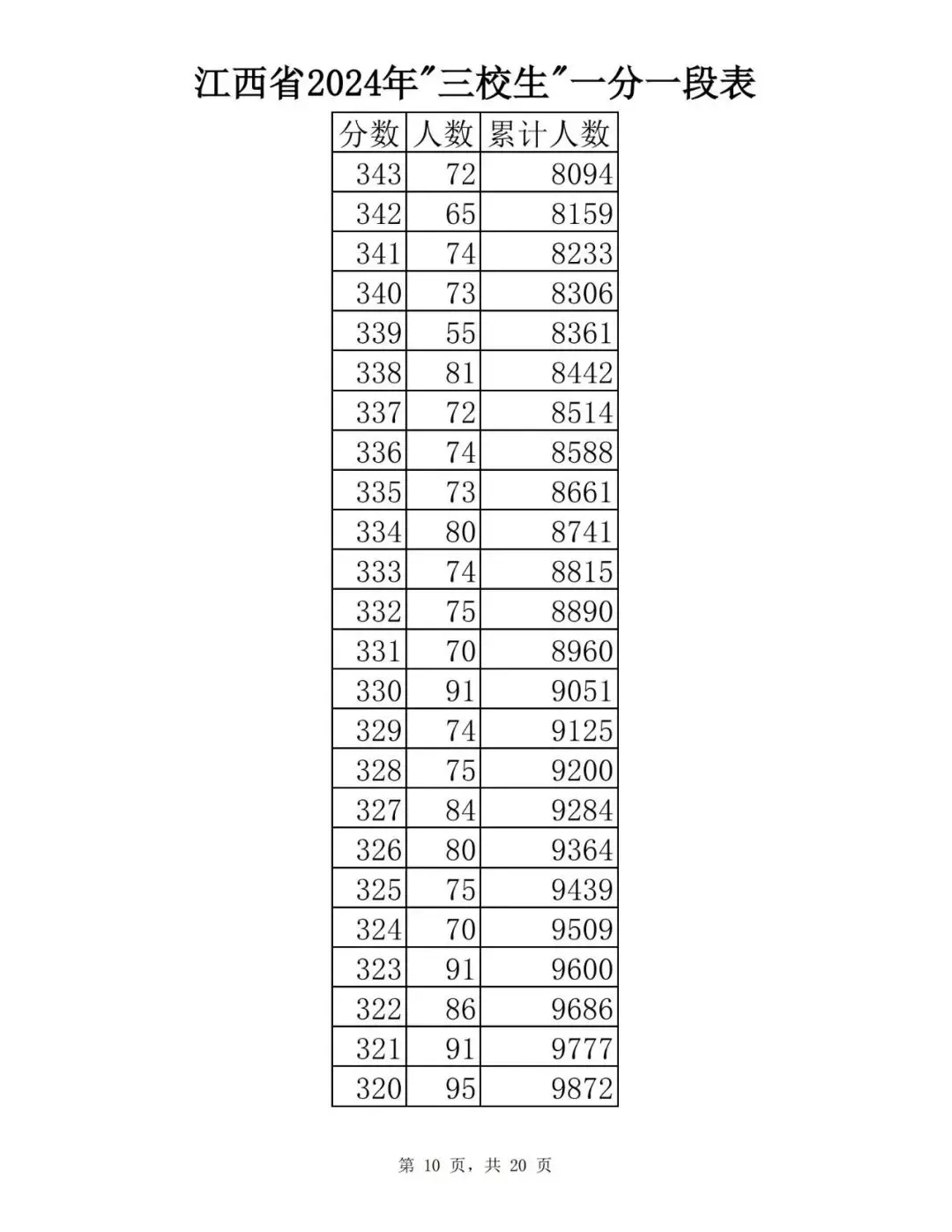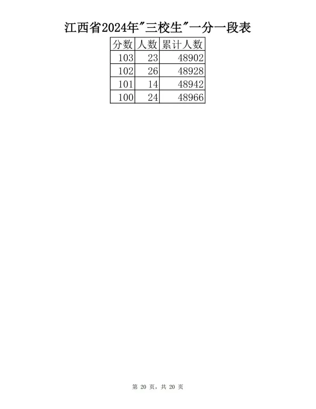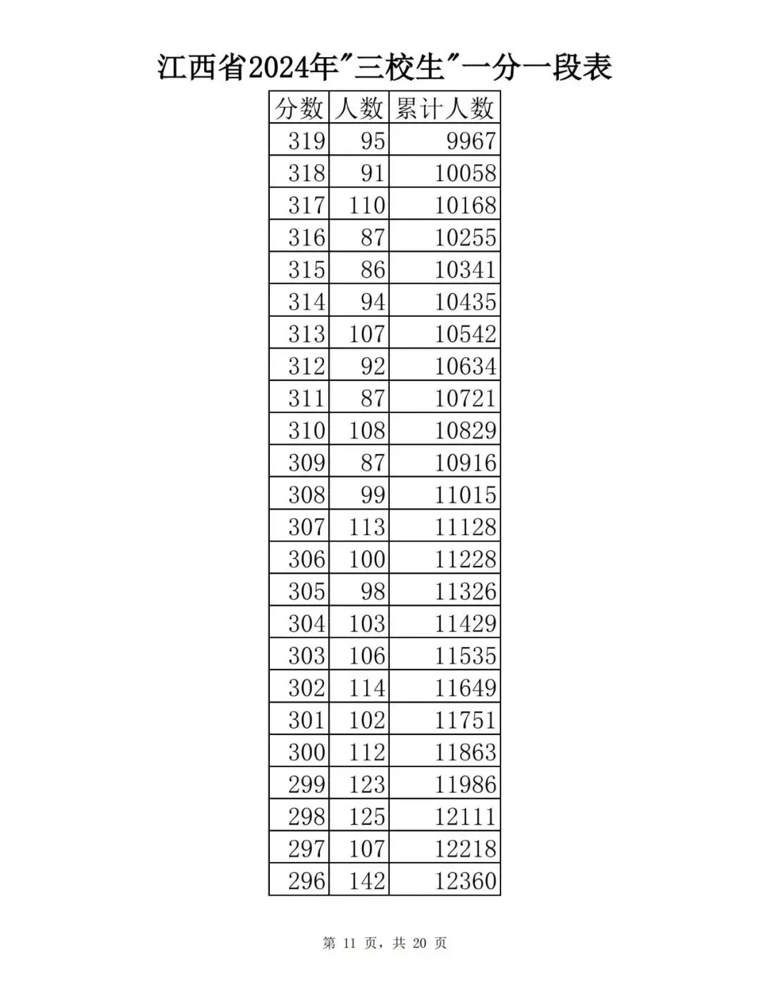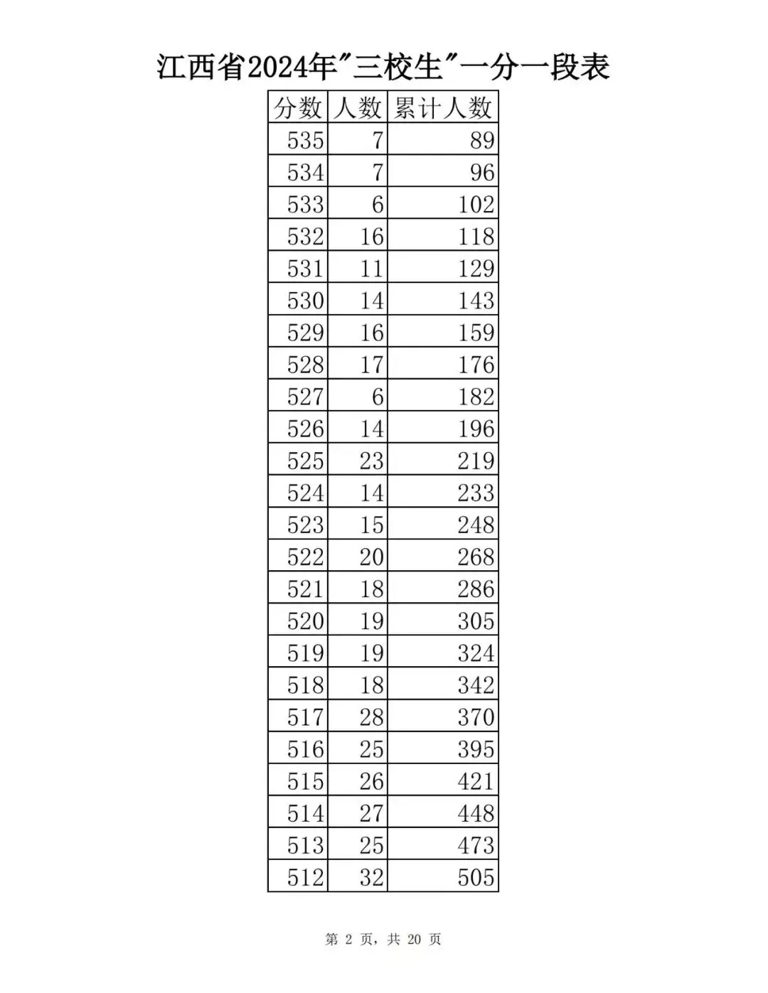 江西省2024普通高考一分一段表公布