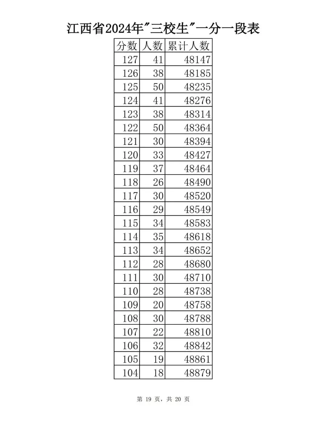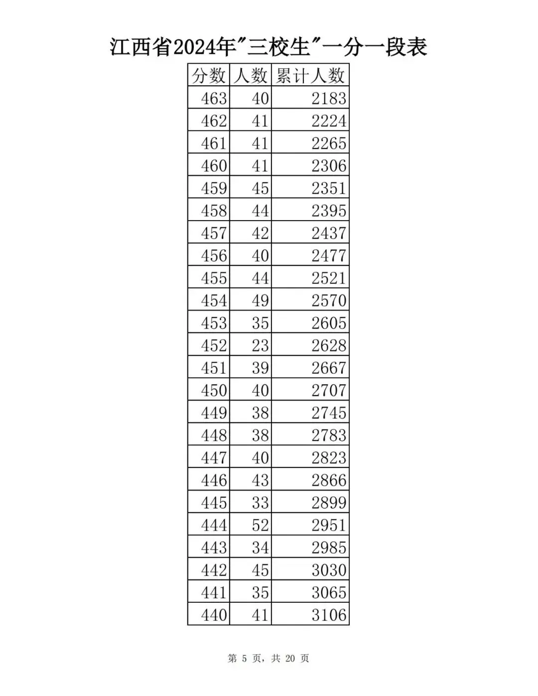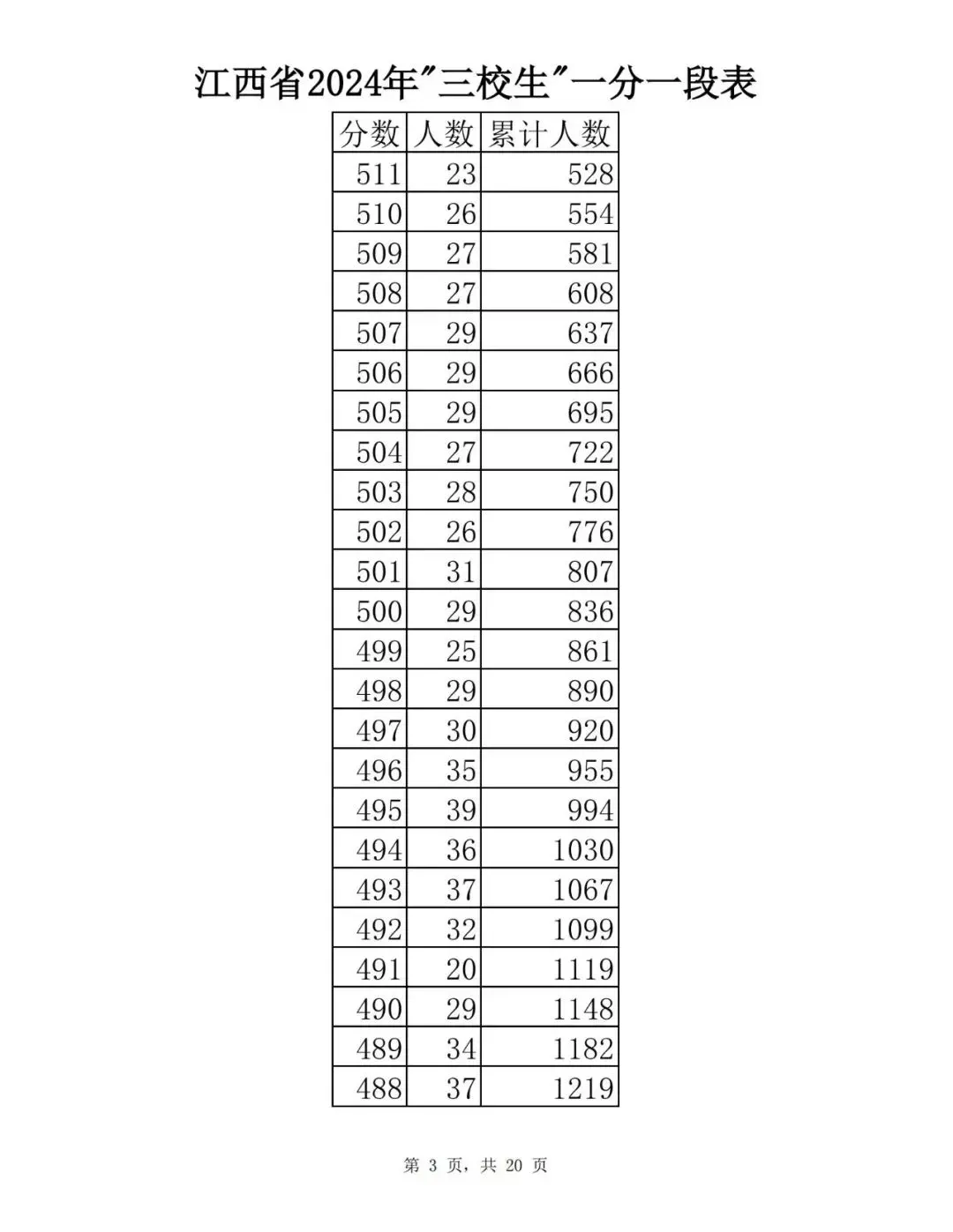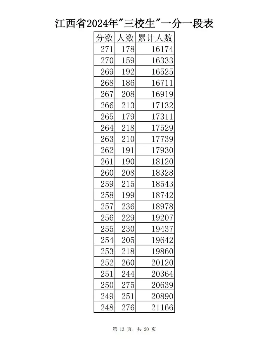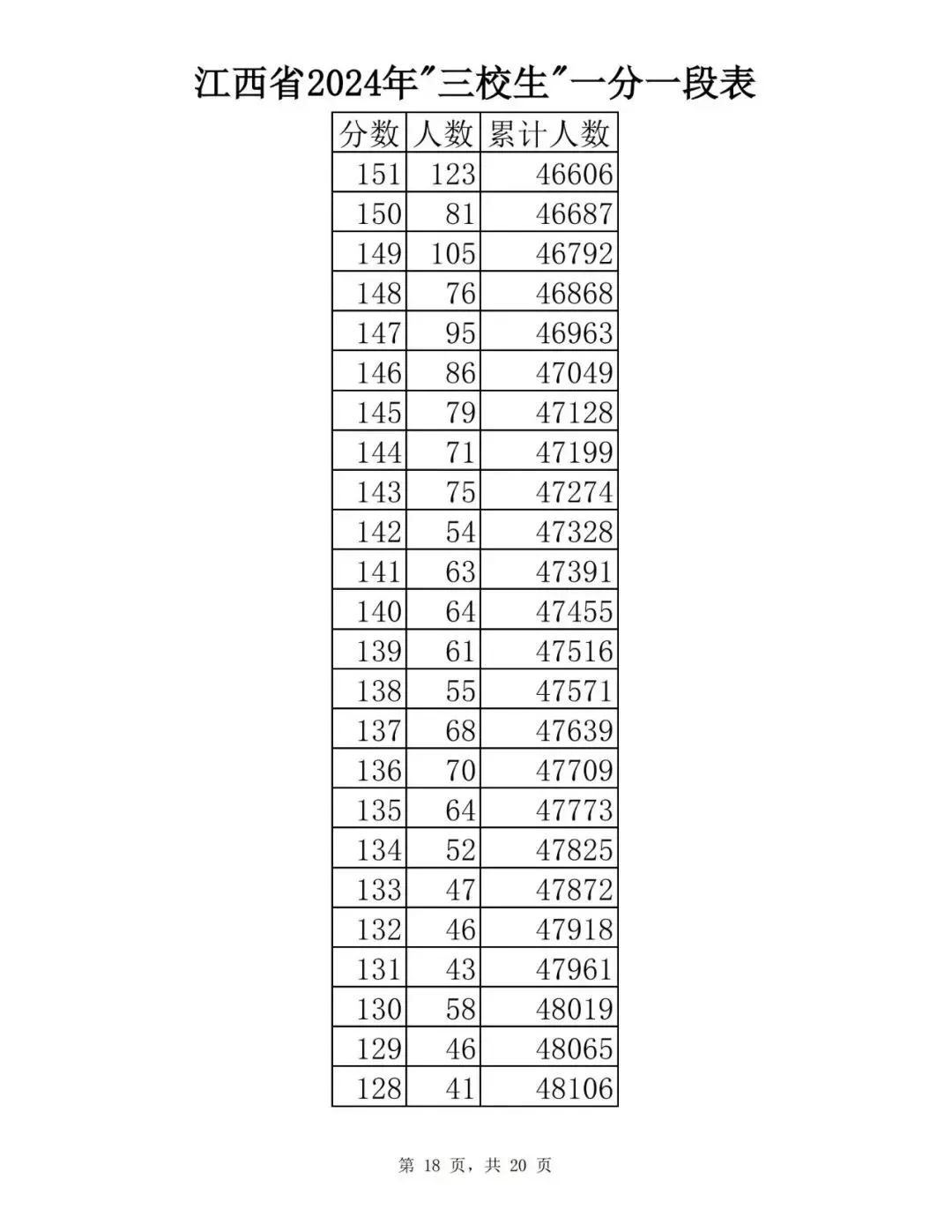 江西省2024普通高考一分一段表公布