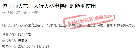 飞扬大道人行天桥电梯何时启用