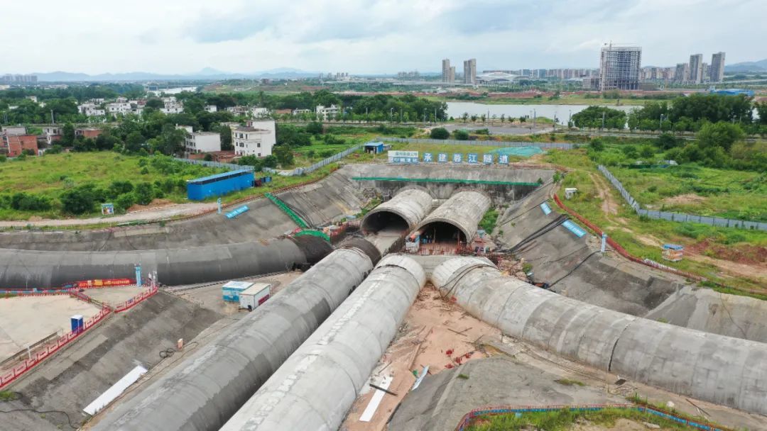 蓉江隧道是全国第七条、江西省第一条矿山法施工的水下隧道,其隧道工程是省、市重点建设民生项目,总投资17.99亿元,项目起点位于赣州经开区客家大道西延以南,连接飞翔大道,终点位于蓉江新区映山红大道以北,连接蓉江大道,主要建设内容为明挖隧道、暗挖隧道、地面道路,主线全长约2.41公里(另包含4条匝道约1.3公里)。