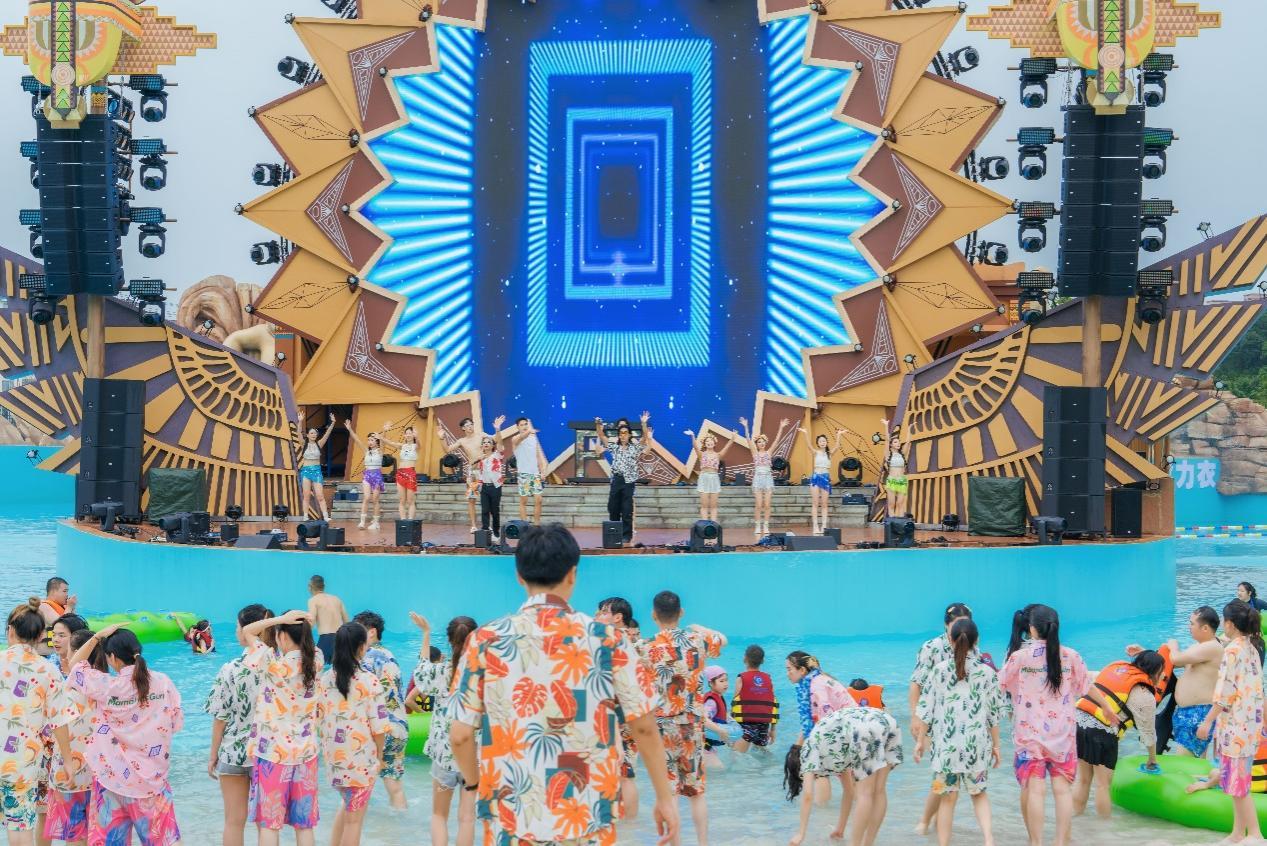 在方特水上乐园,“电音狂欢派对”带领游客开启夏夜水上狂欢,狂野奔放的佤族舞、惊险刺激的喷火表演,动感的虹光与音乐巧妙融合,让夏日尽情躁动起来。