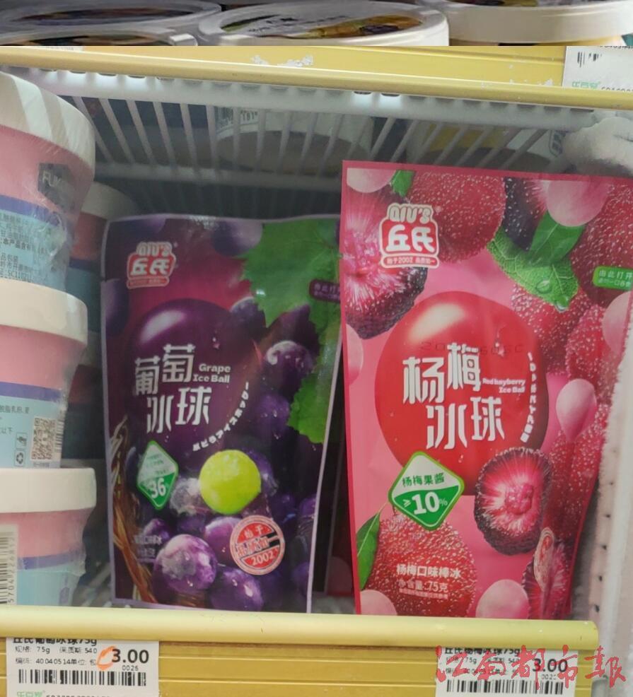 记者在乐豆家便利店(鼎峰中央二店)看到,冰杯被精心陈列在冰柜中,以供顾客选择,该店目前主要在售的是晓德牌冰杯,标价为3元;有家便利店(红谷大厦店)在售的也是晓德牌冰杯;在乐豆家便利店(绿地双子塔店),主要在售冰杯品牌为恋友熙,标价同样是3元。除了传统的原味冰杯外,部分商家还推出了草莓、柠檬芭乐口味的冰果珠,另有葡萄、杨梅口味冰球在售,以满足不同消费者的需求,上述产品的单价从3元到8元不等。