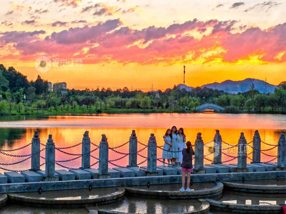 落日黄昏晓 ,夕阳醉晚霞。2024年7月4日,夕阳西下,江西省分宜县钤山湖水生态湿地公园上空,晚霞映照在湿地湖面,交织成绚烂的夏日画作。霞光不时变换颜色,湖面波光粼粼,美不胜收,吸引了众多市民、游客驻足观赏、拍照。 来源:大江网 视觉江西 袁建兵 摄