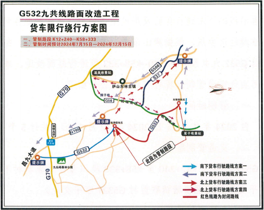 为消除G532九共线部分安全隐患,提高安全保障水平,改善沿线的道路通行体验及居民生活环境,更好的服务环庐山旅游经济发展,根据庐山市委、市政府的计划安排,拟近期对G532九共线K42+240——K58+333段进行路面改造,施工期间实行交通管制,现将有关事项公告如下: