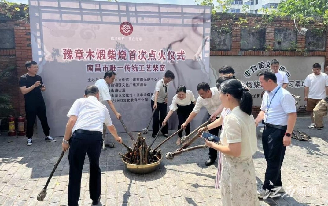 江西新闻客户端讯(江西日报全媒体记者钟秋兰)祭窑神、火神、土地神……点火、烧窑!近日,“豫章木煅柴烧”在江纺1953文化教育产业园举行首次点火仪式,南昌第一座传统工艺柴窑就此点火亮相。