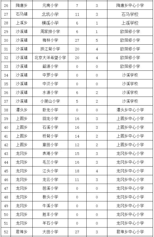 《永丰县秋季拟撤并义务教育学校方案》名单