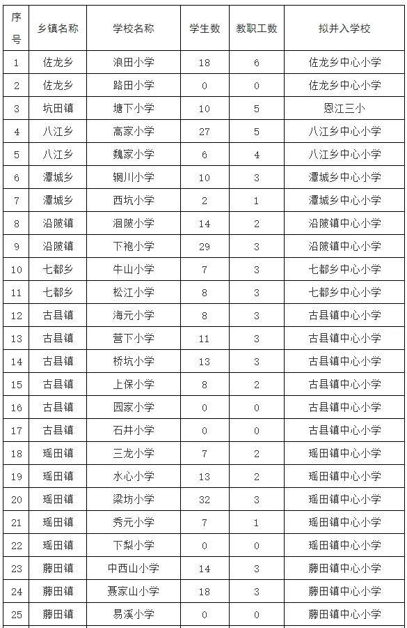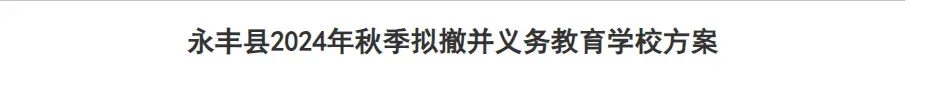 近年来,在农村人口向城市流动的大背景下,撤点并校也是为了整合农村教育资源、优化教育资源配置。经永丰县人民政府研究决定,公布永丰县2024年秋季拟撤并义务教育学校方案,撤并工作相关安排如下: