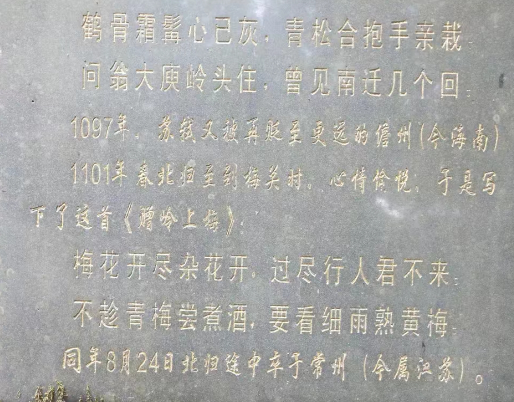 苏轼南贬谪和北归时途径大庾岭古道,留下《赠岭上梅》等诗篇。