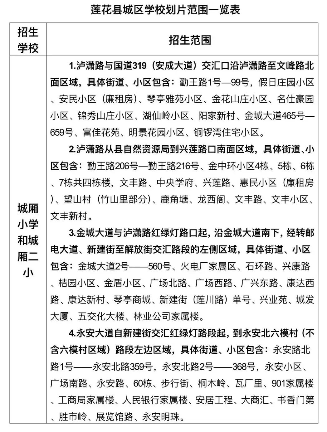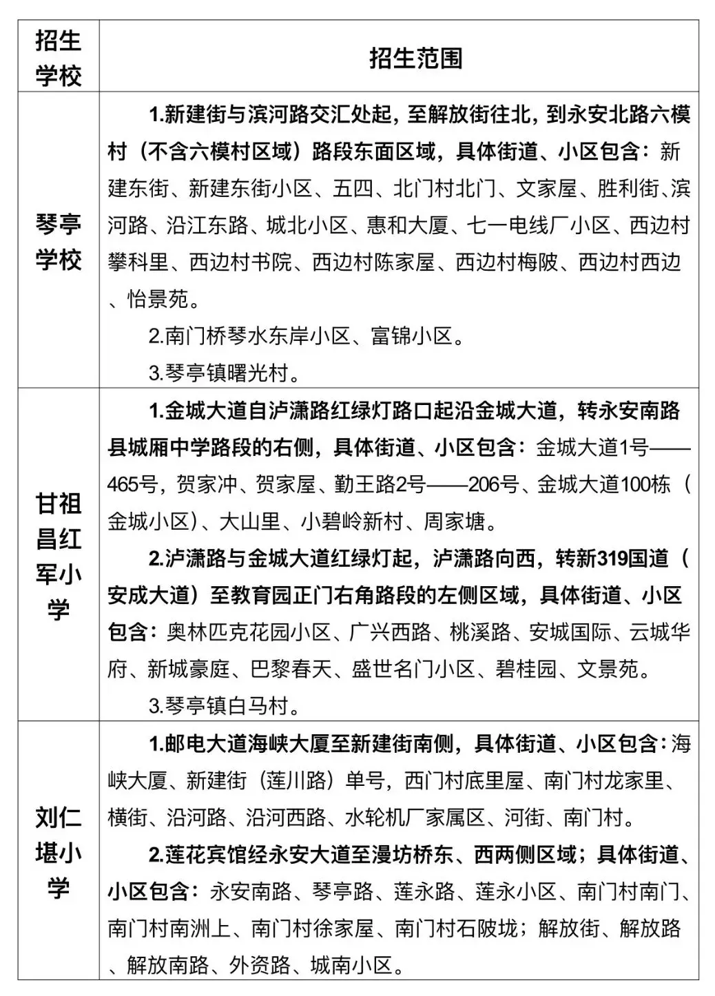1.城厢小学、城厢二小、甘祖昌红军小学按照划片招生范围只招收第一、二、三、四批次学生。因城厢小学与城厢二小实施联合招生,届时将视城厢小学和城厢二小学校办学资源情况,由学校随机调整新生生源分配;