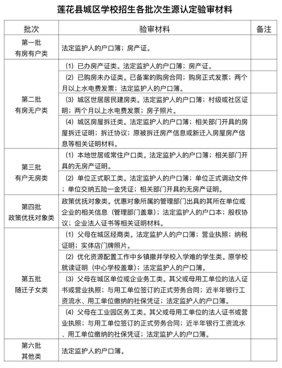 (三)符合第五、六批次的小学一年级、初中七年级学生和其他二至六年级新转进学生采取网上预报名方式登记报名,报名方式、招生计划和招生流程届时在莲花教育公众号公布。