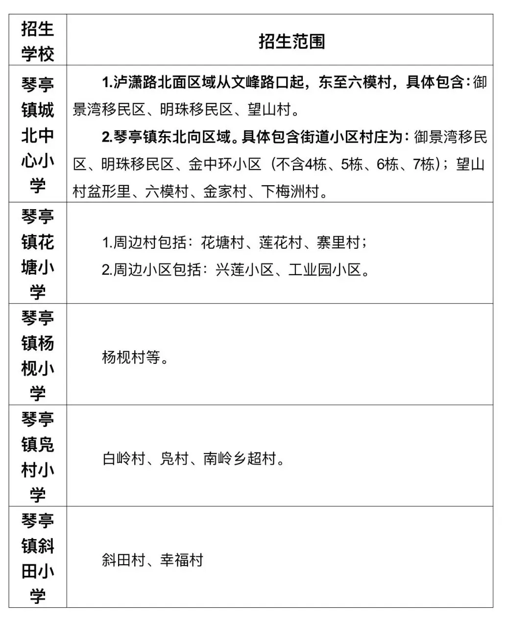 2.琴亭学校,刘仁堪小学,琴亭镇城北中心小学、花塘小学及琴亭镇辖区内其他小学除按照划片招生范围招收第一、二、三、四批次学生外,根据学位剩余情况统筹安排第五、六批次学生。