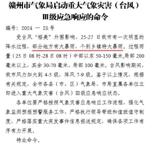 赣州启动重大气象灾害