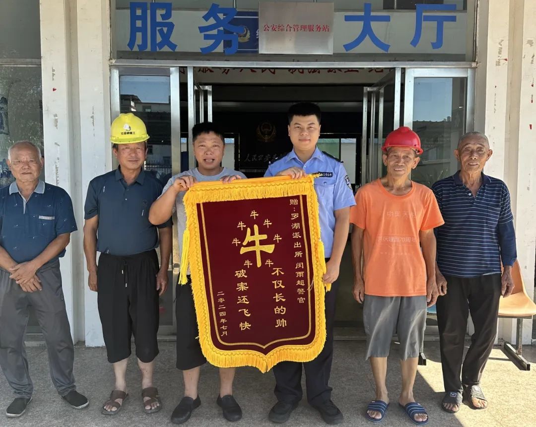 罗湖派出所民警接到报警后,立马展开侦查,通过民警分析研判,在2024年7月15日,将嫌疑人邓某、衡某某抓获,两人对此供认不讳。经讯问,两人将剪断的电缆卖在了一家废品店,民警将剪断的电缆扣押,并将电缆退回给了群众。铁堡村村民对民警的破案效率点赞,并送上锦旗。