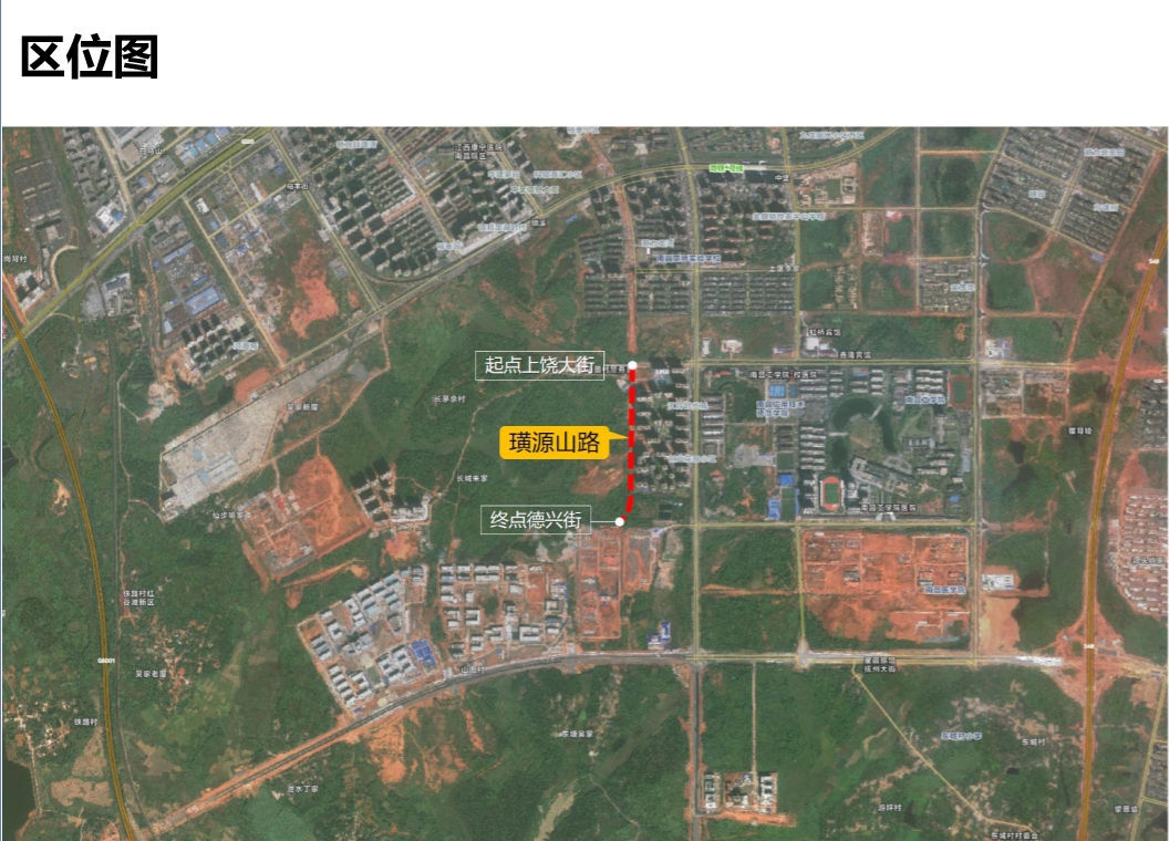 据了解,本次规划的璜源山路北起上饶大街,西至玉壶山路,定位为城市次干道,长约1.702公里。道路标准段红线宽30米。