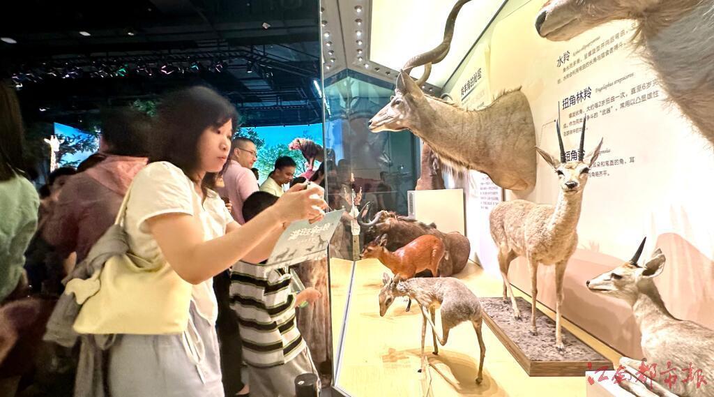 据了解,贝林捐赠动物标本暨鄱阳湖自然生态展是省博物馆第六个基本陈列,展览在博物馆四层8号展厅长期展出。展览以湖泊为主题,分为“湖泊形成 生命之基”“湖泊流域 缤纷生命”“与湖共生 协同永续”三大单元,集中展出分布于世界不同湖泊区域的珍稀野生动植物标本370余件,展现环球多种地理环境,凸显鄱阳湖流域生态系统多样性及其特征与代表性物种,展现大自然的迷人风采。展厅设置AR实景瞭望台、3D影院、多媒体游戏等多种互动装置,带领观众沉浸式体验自然的魅力。