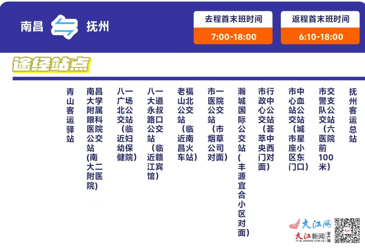 南昌(青山客运驿站)至抚州(抚州客运总站)“站点巴士”每日开行12班
