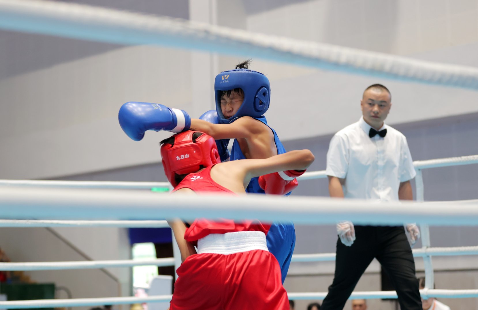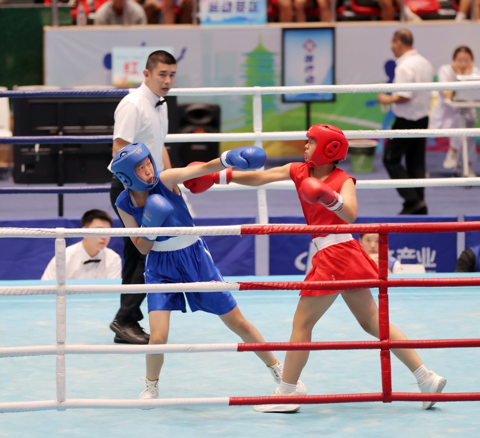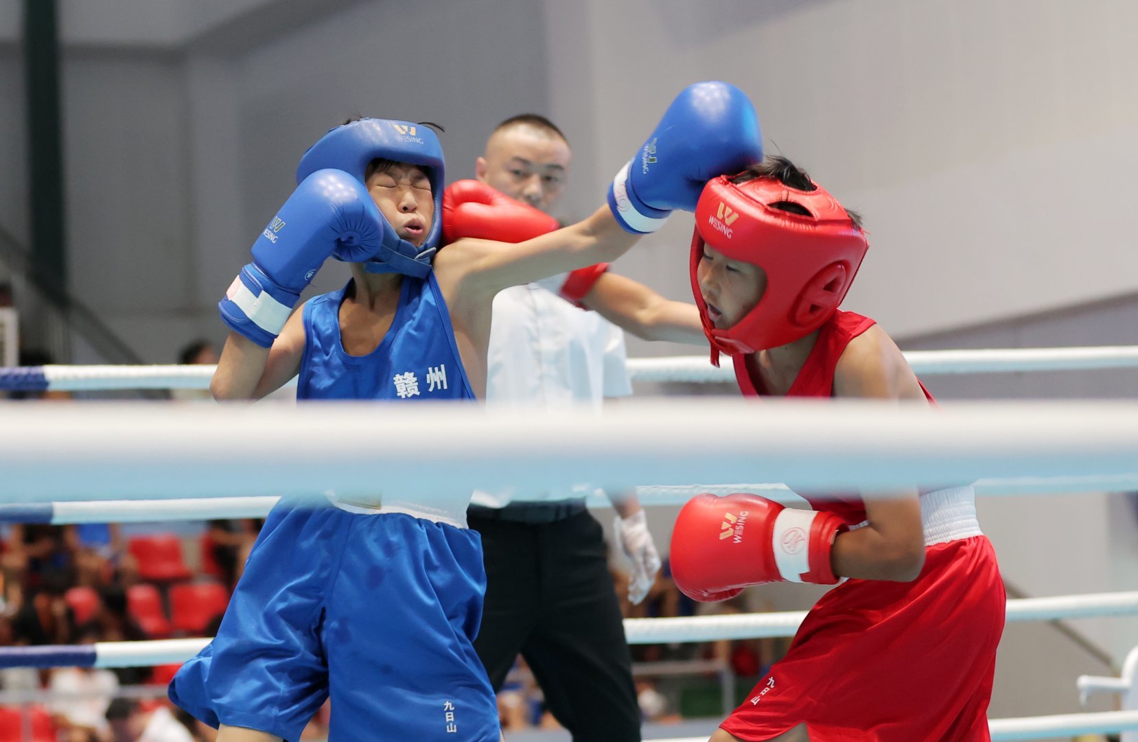 九江新闻网讯(九江日报全媒记者 刘家 摄)8月13日,2024年江西省青少年拳击锦标赛在九江职业大学体育馆拉开帷幕,来自全省11个设区市的705名青少年拳击运动员齐聚浔城,在擂台上一展身手。此次锦标赛由江西省体育局主办,江西省重竞技运动管理中心、九江市体育局承办,九江中体体育管理有限公司负责赛事运营。比赛执行中国拳击协会最新审定的《拳击竞赛规则》,采用个人对抗赛单败淘汰赛制,在为期7天的比赛里,运动员将在不同的组别进行对抗。