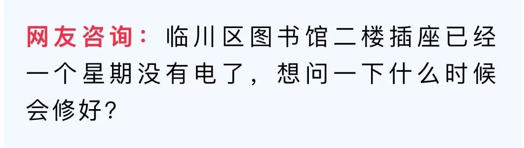 临川区图书馆二楼插座已经一个星期没有电了,想问一下什么时候会修好?