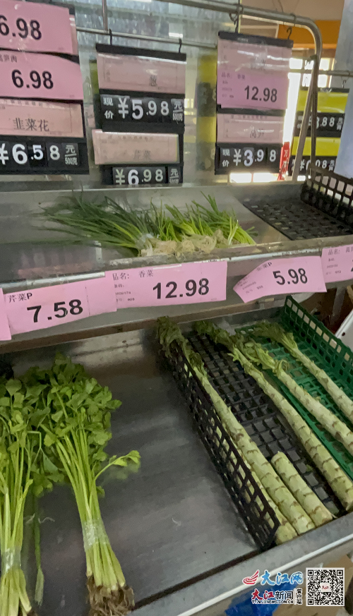 菜摊老板告诉记者,黄瓜从1、2元多涨到6元(一斤),芹菜从5元涨到8元多,其中莴笋的价格可谓暴涨,“之前收来的价格是多,现在不算工费、运输费、摊位费,光收上来价格就要5到6块多,卖到7块钱一斤,相比之前翻倍。”