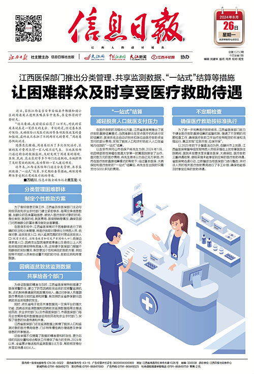 近年来,江西省医保部门通过分类管理、共享监测数据、“一站式”结算、不定期检查等措施,确保困难群体享受到应有的医疗救助待遇。