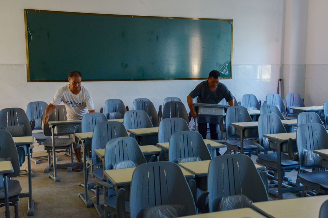 看到教室内一张张崭新的“可躺式”课桌椅摆放整齐