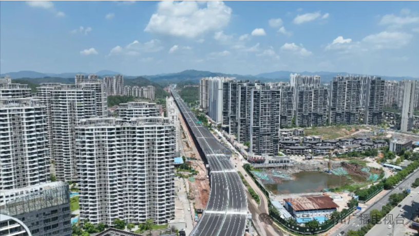 作为我市推动城市能级提升行动建设的重要支撑项目,赣州中心城区“五区一体化”四横六纵快速路项目的重要组成部分,联系赣州主城各区、接通各高速出入口的重要枢纽工程,总投资约59.62亿元,里程达19.04公里,共有3处立交衔接,13对上下出入口;是二期七条快速路中协调组织最复杂、施工任务最艰巨、克服困难最多的路段——自项目开工以来,赣州发展集团上下联动省市各职能部门、参建单位及沿线企业、居民解决了项目征拆、用地报批、改扩建变更、涉铁等各类重难点问题;也是体量最大、辐射带动影响最大的路段——接通了赣州北、赣州东、赣县北三个高速出入口,同时直接串联起南康主城区、蓉江新区、章江新区、老城区、赣县主城区、经开区及水西片区等各板块,形成联动发展新格局。