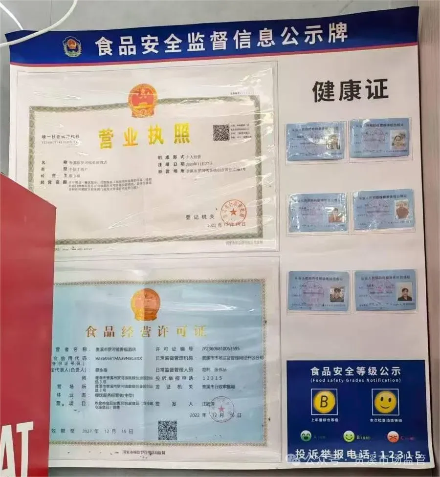 亮证经营、工作人员健康证齐全、两个责任制度落实到位