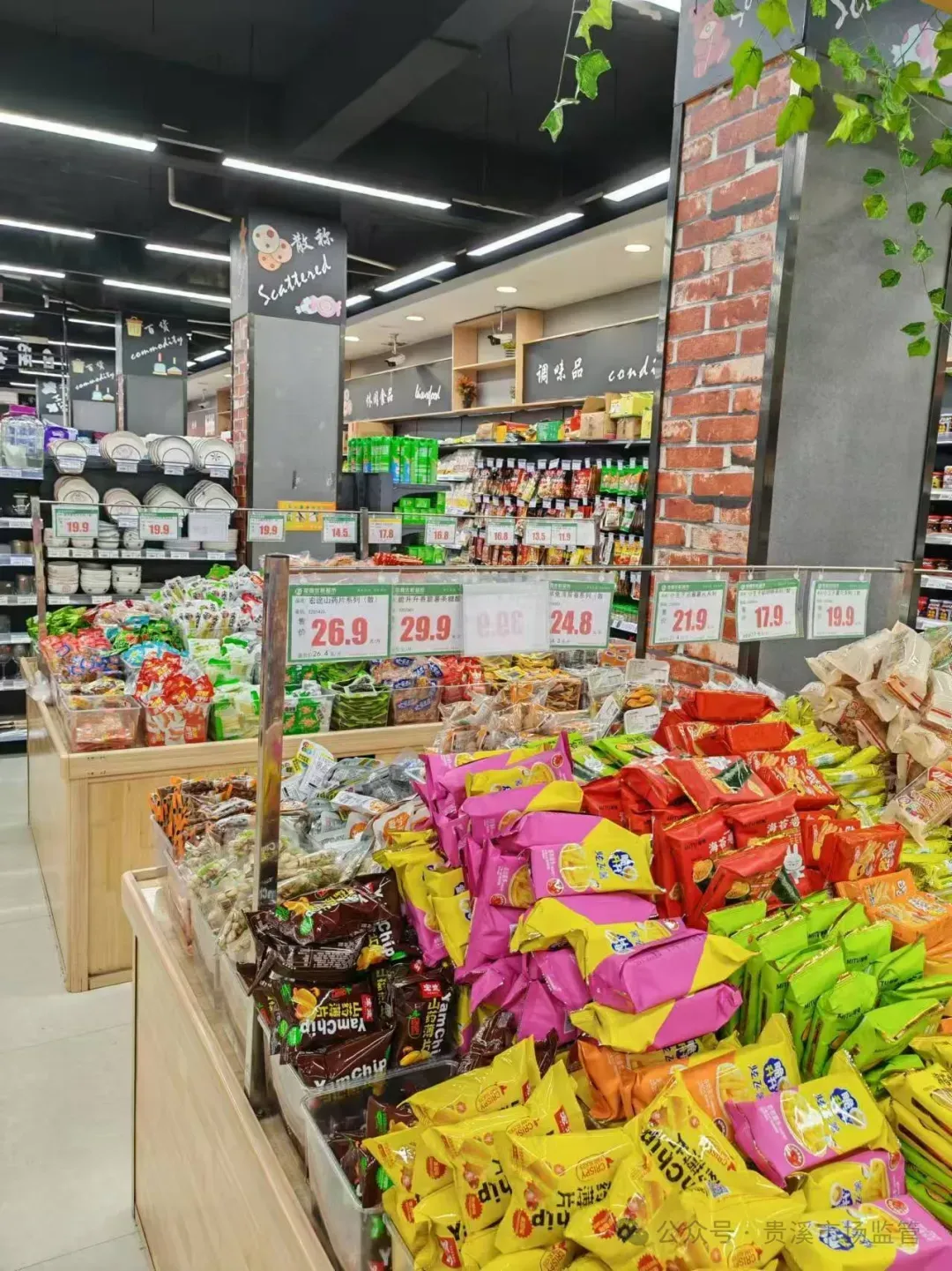 店内整洁有序、食品分类有序摆放、明码标价