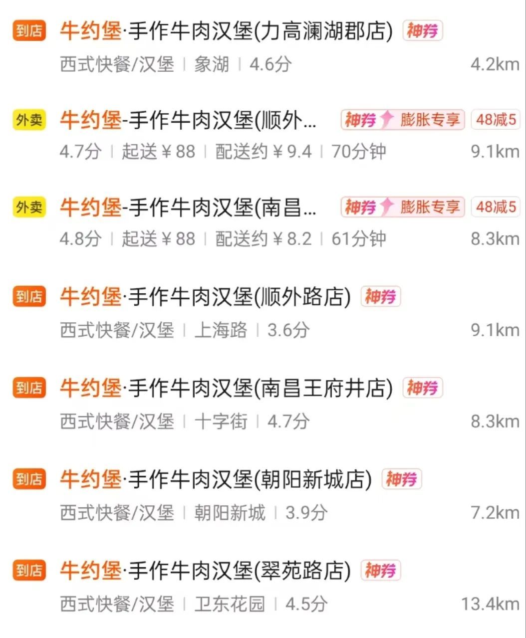 据公开资料,牛约堡从上海起家,目前在全国开了近1400家门店,据第三方平台窄门餐眼,截至8月2日,牛约堡营业中的门店为1051家,主要分布在江苏、上海、浙江、广 东等地,南昌也有门店。