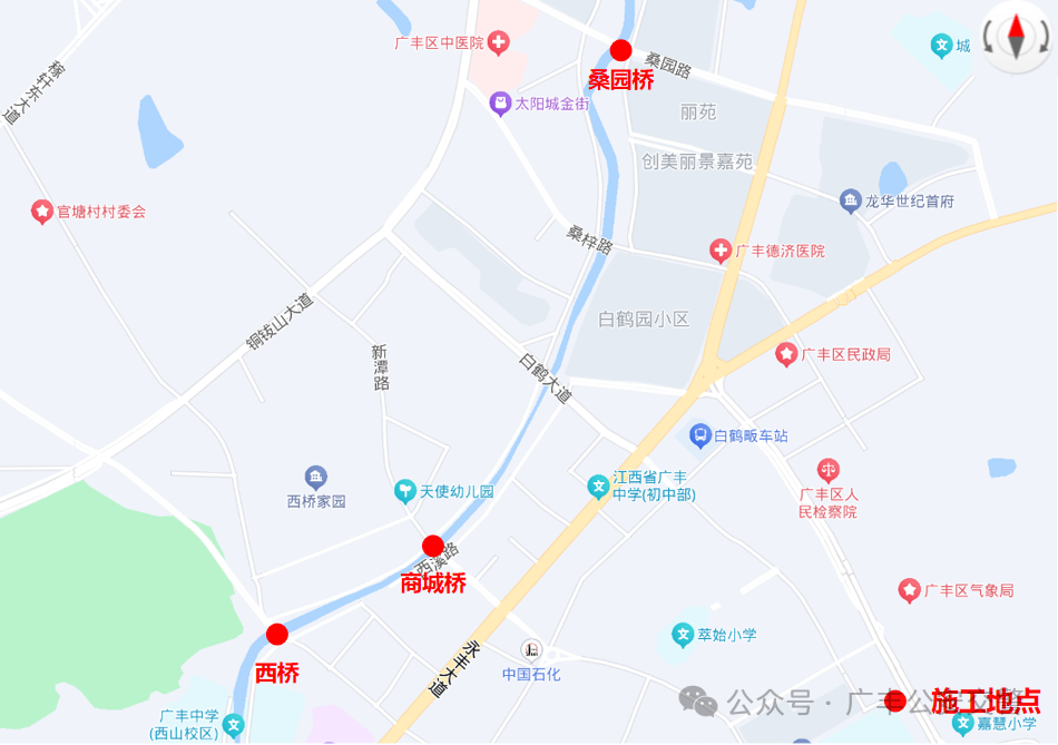 因广丰区城区大桥提升改造项目(二期)建设需要,将对上饶市广丰区桑园桥、商城桥、西桥进行半封闭施工,为确保施工期间道路交通安全,广丰区公安局交警大队决定对该施工路段实行临时交通管制措施,现通告如下: